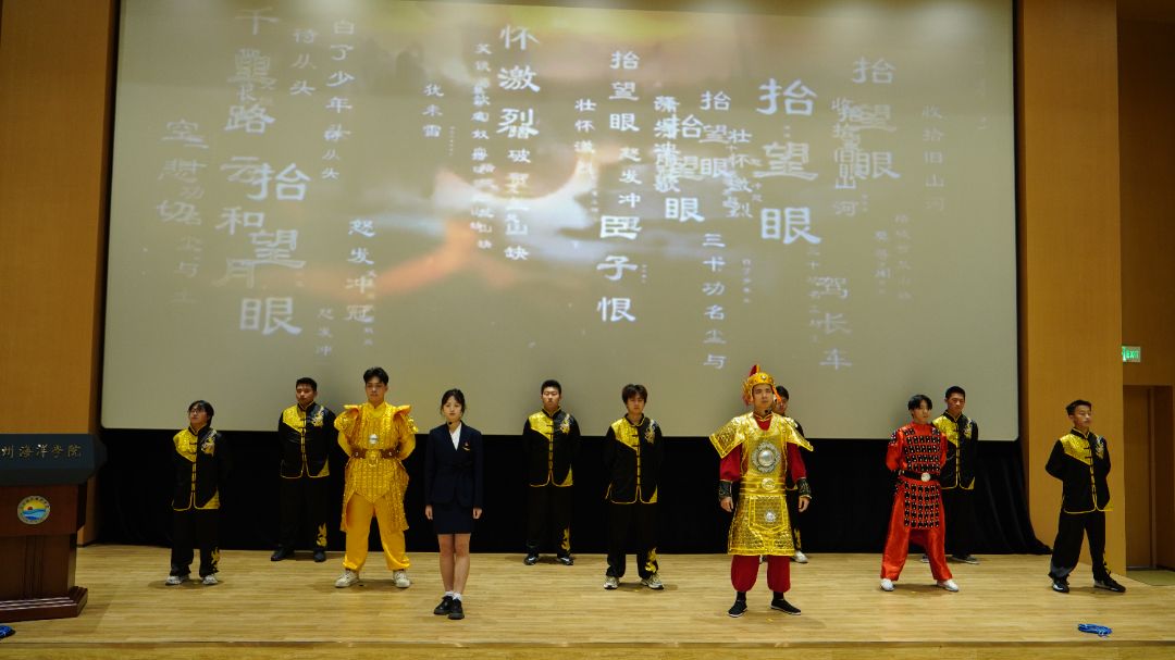 ▲汇报演出:大学生语言文化协会、武术社带诵读剧目《满江红》