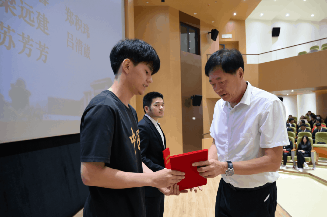 ▲屈先锋书记为“志愿之星”获奖同学颁奖