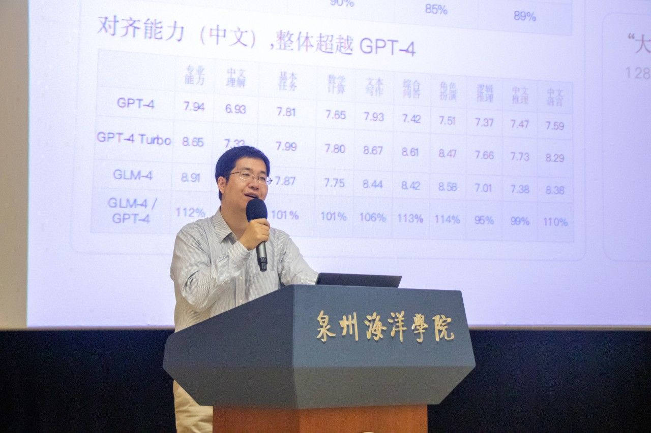 (新闻中心讯 党委宣传部李怡然供稿 校党委宣传部报道)4月29日,学校在图书馆二楼报告厅举行了数字教育与人工智能专题讲座,特邀智谱AI副总裁吴玮杰、解决方案与技术专家毕榕晏主讲。学校董事长蔡天真、校长庄伟廉、党委书记郑艳等全体校领导、各部门及二级学院负责人、信息化骨干、各部门信息员及教师代表现场聆听。讲座由校长庄伟廉主持。