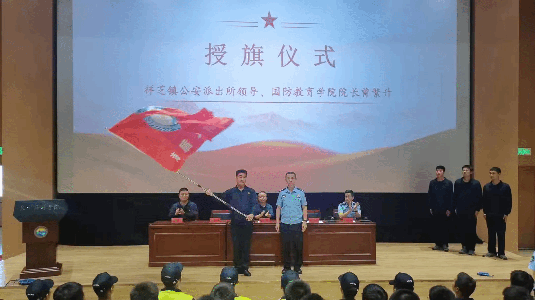 (新闻中心讯 国防教育学院黄莹莹供稿 校党委宣传部报道)4月29日,祥芝镇公安派出所党支部、国防教育学院党支部共建签约仪式暨海盾义警队授旗仪式在我校图书馆二楼报告厅举行。副校长钱学东、祥芝镇海防派出所所长汪文良、祥芝镇派出所副所长王银城,国防教育学院院长曾繁升、党支部书记苏良城出席此次会议。祥芝派出所民警及国防教育学院全体师生参会。