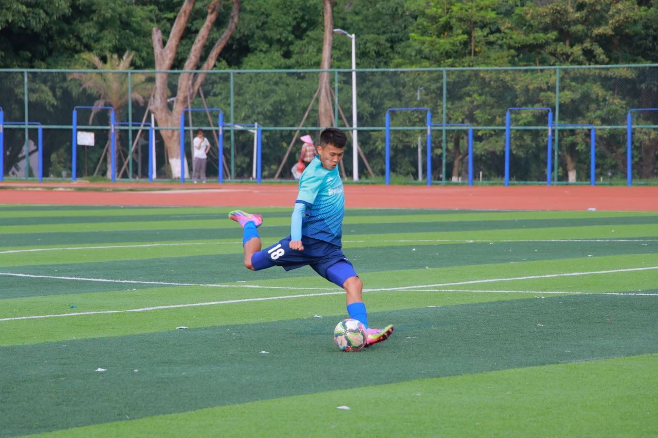 在对阵泉州职业技术大学的半决赛中,场面一度陷入胶着。我队9号毛怀萱在中圈附近接球后,在40米开外直接起脚远射,打进世界波,为最终2:1取胜立下汗马功劳。