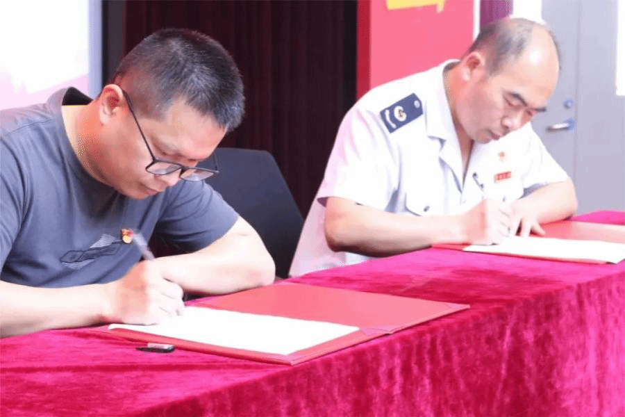 石狮市税务局祥芝分局支部书记王炳玺与泉州海洋职业学院经济管理学院党支部副书记林钊签订党建共建协议书。