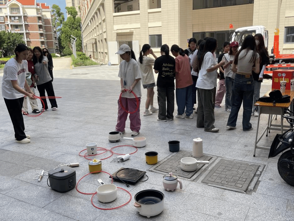 “公寓安全圈”通过套圈游戏的形式,让同学们识别违规电器,增强对宿舍安全的重视。