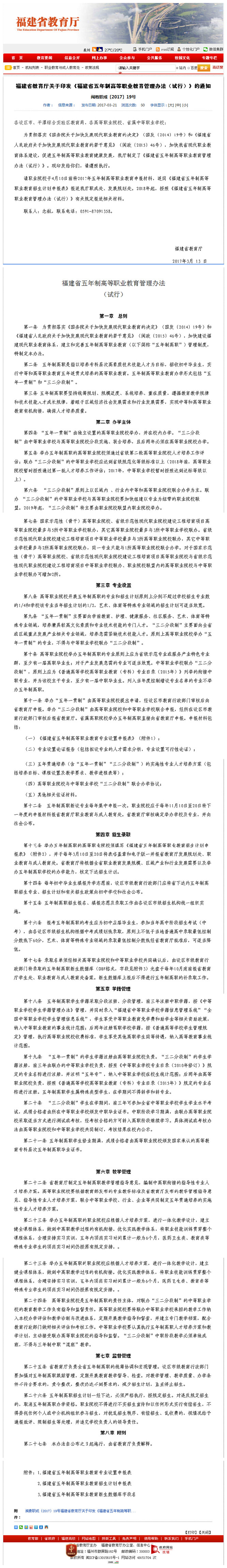 新闻中心讯(熊华萍供稿 党政办编辑) 近日,按照福建省教育厅印发的《福建省五年制高等职业教育管理办法(试行)》(闽教职成〔2017〕19号)的专业申报要求,我院教务处组织相关专业负责人积极申报2017年五年制高等职业教育,经过严格的调研、审核、论证、上报等准备工作,我院申报的“五年一贯制”培养方案的表演艺术专业和航海技术、轮机工程技术、空中乘务等3个专业的“3+2”分段培养成功获批。