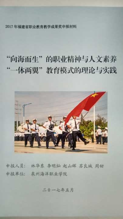 新闻中心讯 近日,福建省教育厅下发《福建省教育厅关于公布2017年省级教学成果奖获奖项目的通知》,我院院长林华东教授领衔申报的《“向海而生”的职业精神与人文素养“一体两翼”教育模式的探索与实践》(成果完成人:林华东 李明灿 赵山辉 苏良城 周甜)项目荣获2017年职业教育省级教学成果二等奖。这是我院办学以来首次斩获的省级教学成果奖。 据悉,省级教学成果奖四年一评,其中,职业教育省级教学成果奖特等奖15项、一等奖25项、二等奖45项。
