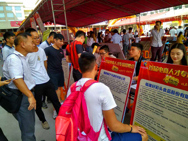 新闻中心讯(张漫泓供稿 党政办编辑)近日,晋江市首届电商人才专场招聘会在晋江市陈埭镇召开,在就业指导中心的组织下,我院2015级工商企业管理和市场营销专业的学生前往晋江参加了招聘会。在招聘会上,同学们带着提前准备好的个人简历,寻找自己心仪的公司及岗位。招聘会提供了不同的岗位和职务供同学们选择,招聘方纷纷表示他们需求的应聘者应能吃苦耐劳、有责任心、专业技术知识扎实并有一定的社会实践经验。