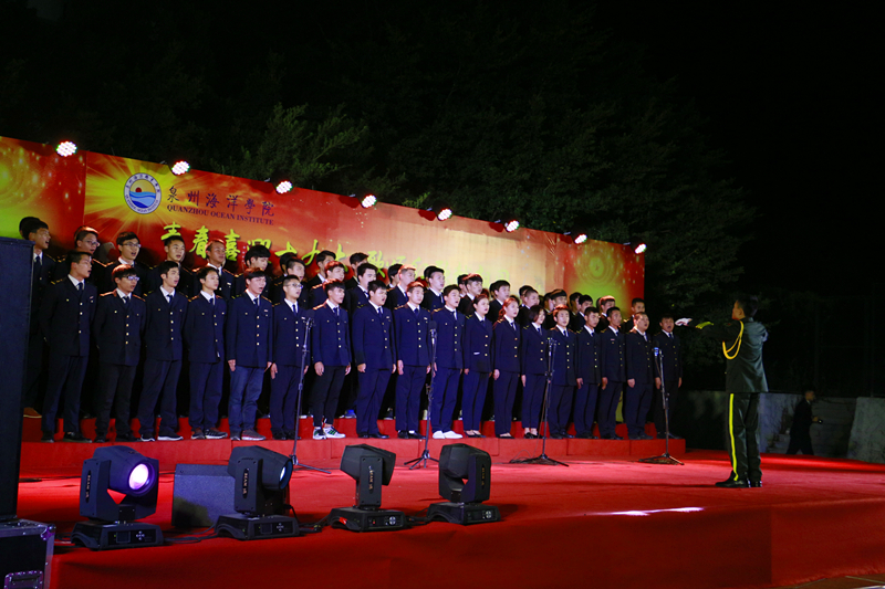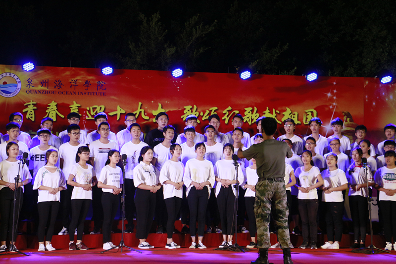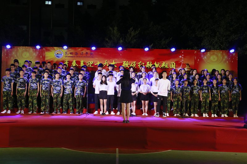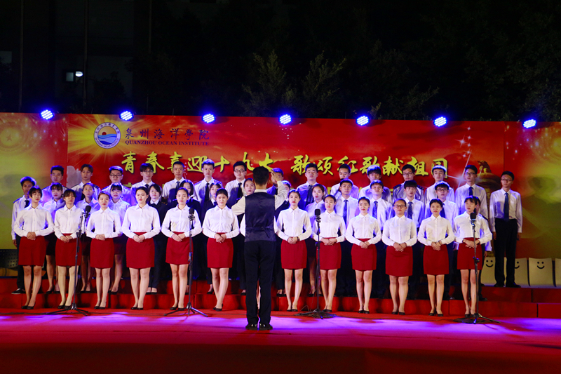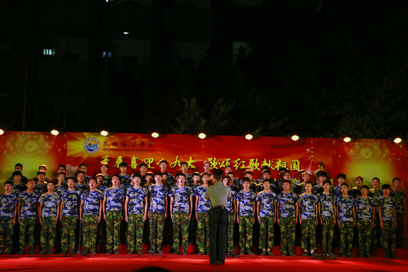 新闻中心讯(记者团供稿 党政办编辑)2017年10月18日晚,为迎接党的十九大顺利召开,由泉州海洋学院校团委学生会主办的第三届合唱比赛在灯光篮球场举行。出席本次活动的领导嘉宾有人文系主任陈经义、轮机系主任沈雄、基础部主任黄演卿等系部主任。赵晋晨、周甜、李阳、苏良城、潘思恒、王志华、阮凤彬等老师担任比赛评委。我院十八只队伍展现自我风采,唱响祖国,喜迎十九大。