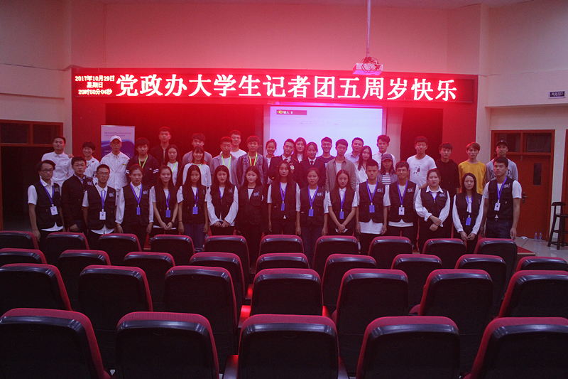 新闻中心讯(记者团供稿 党政办编辑)2017年10月29日20时,泉州海洋学院党政办大学生记者团五周年庆典在多功能报告厅举行。泉州理工学院和泉州轻工学院等友校大学生记者团代表参加了此次庆典。福建省易洁科技有限公司、宏辉蛋糕店以及沃德堡餐厅等企业也大力支持本次周年庆典。