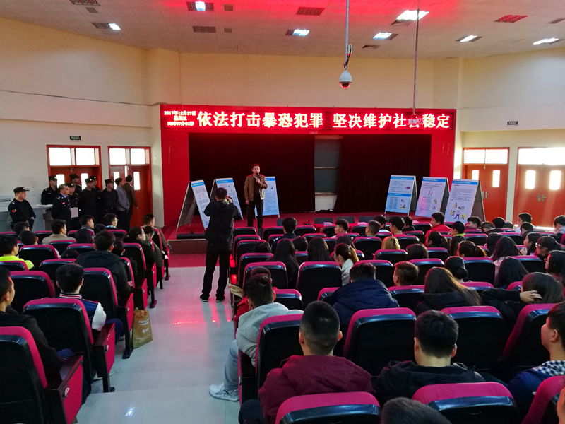 新闻中心讯(郭晓军供稿 党政办编辑)近日,福建省石狮市公安局巡特警反恐大队联合祥芝边防派出所在我院开展反恐的教育活动。此次活动由石狮公安局巡特警反恐大队民警用语言,展板,警用设备等讲述相关反恐知识、防恐意识以及如何应对恐怖事件。学院分管领导、学生处全体老师以及各班代表学生参与。活动由赵山辉副院长主持。