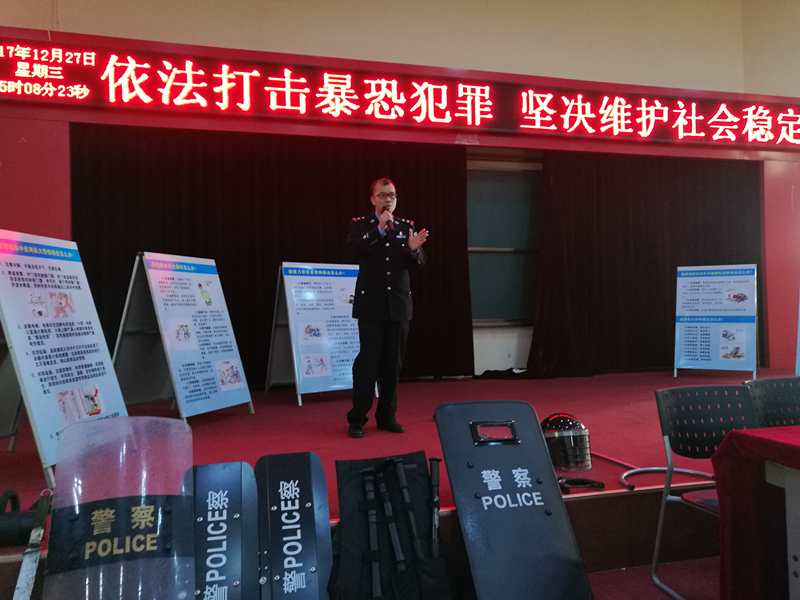 会上石狮市公安局巡特警反恐大队黄警官给大家进行反恐怖组织的教育宣讲。呼吁大家增强防恐意识,防范恐怖袭击,并重点强调注意避免个人自身涉恐言论。会后,学生们不断地提出各种关于反恐的问题,数名民警为学生进行了详细的解答,让学生统一意识“依法打击暴恐犯罪 坚决维护社会稳定”。