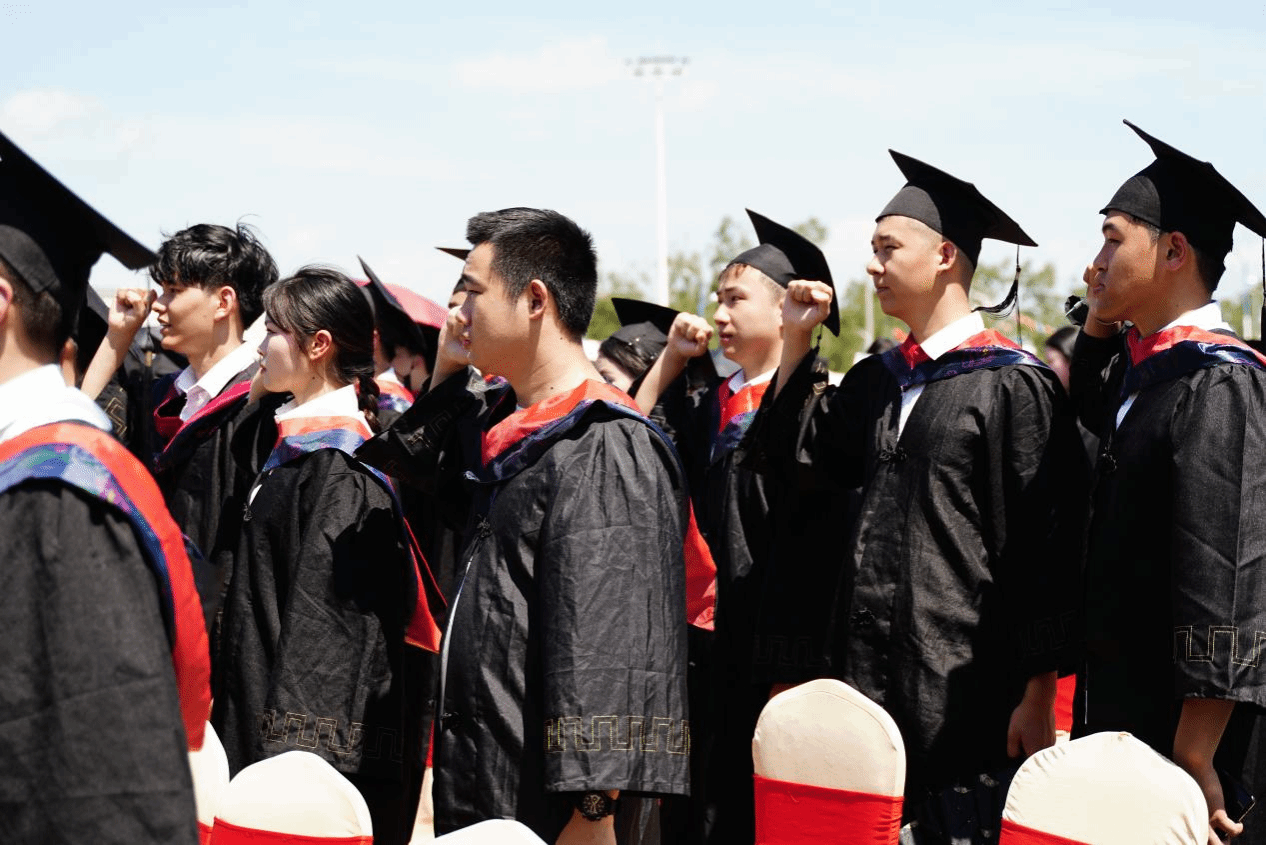 随后,许诗淇同学带领全体在场毕业生宣誓。