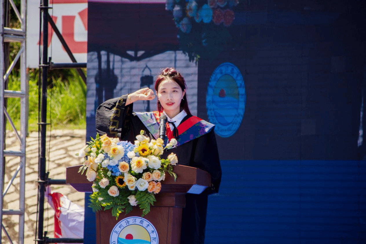 信息工程学院大数据 211 班许诗淇同学代表2024届全体毕业生发言。她对学校的精心培养、老师的悉心教导、亲友的鼎力支持表达了感谢,并表示将不忘泉海时光,带着母校的期望,勇敢面对挑战、拥抱变化,将所学所悟转化为前行的动力,为实现自己的梦想而努力奋斗。