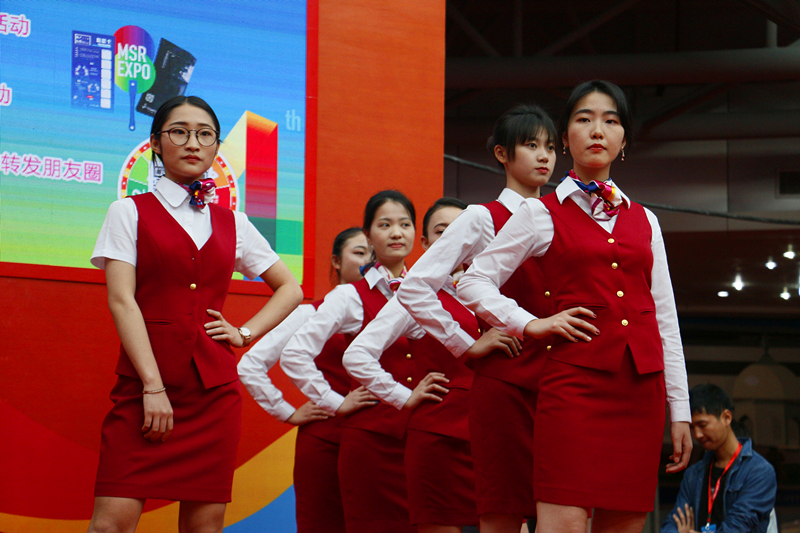 在海博会中心舞台上,我院艺术体育系、人文系空乘专业和艺术团联合组织的服装秀(空乘171)、敦煌舞(张妮)、爵士舞(表演161)、蒙古舞(谢建林)、伞舞(表演161)、爵士舞串烧(付海洋与艺术团)和舞狮(社体171)7个节目更是锦上添花,吸引了整个展览厅里的顾客,并获得了现场观众们连接不断热烈的掌声。