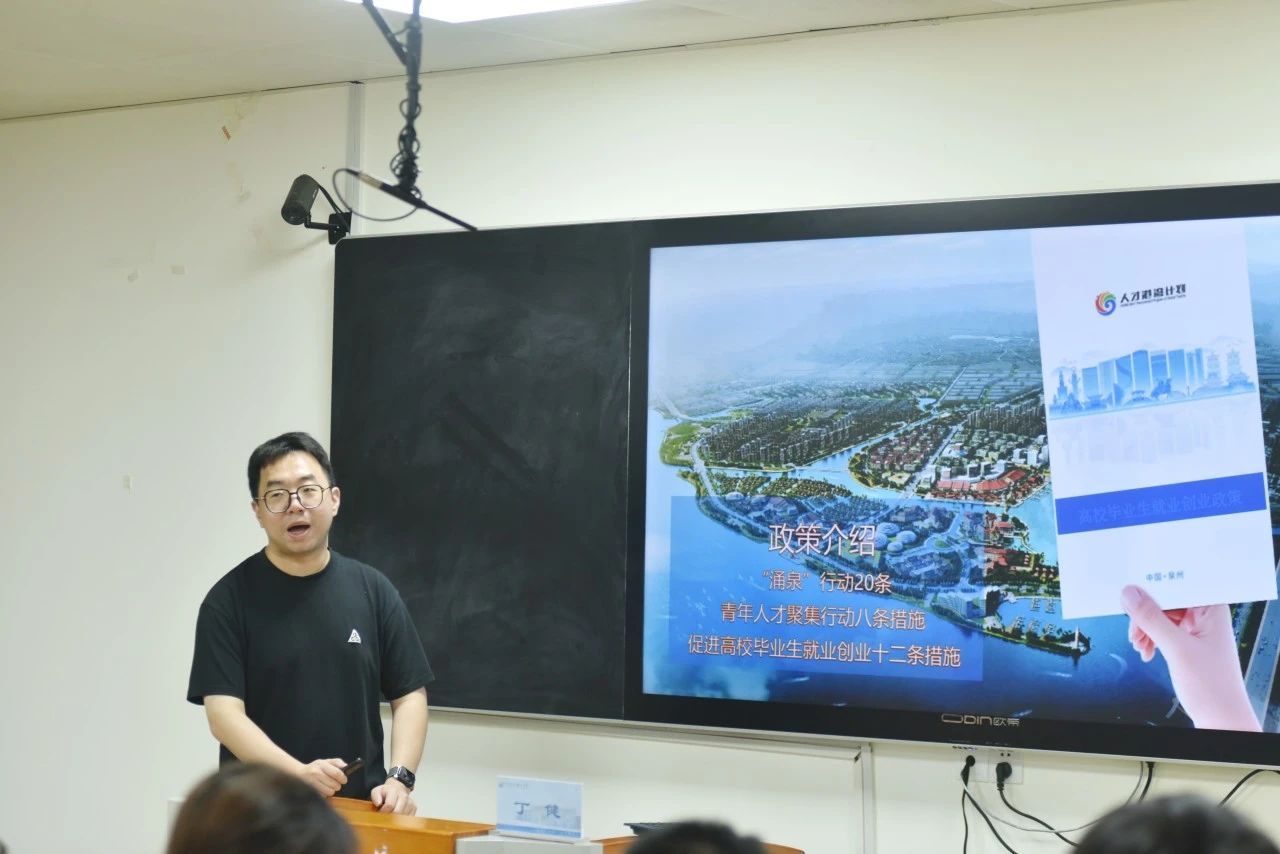 宣讲中,人社局工作人员详细介绍了泉州的文化特色及一系列支持高校毕业生就业的政策举措,如“涌泉”行动20条、青年人才聚集行动八条措施等,鼓励毕业生积极投身泉州市的经济建设。
