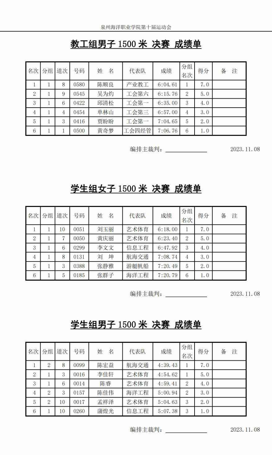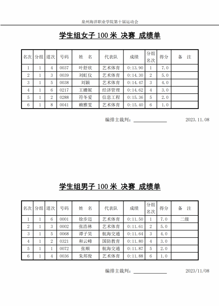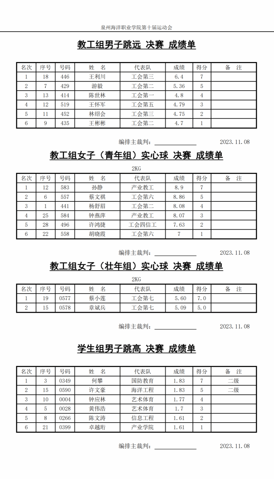 11月8日决赛成绩单