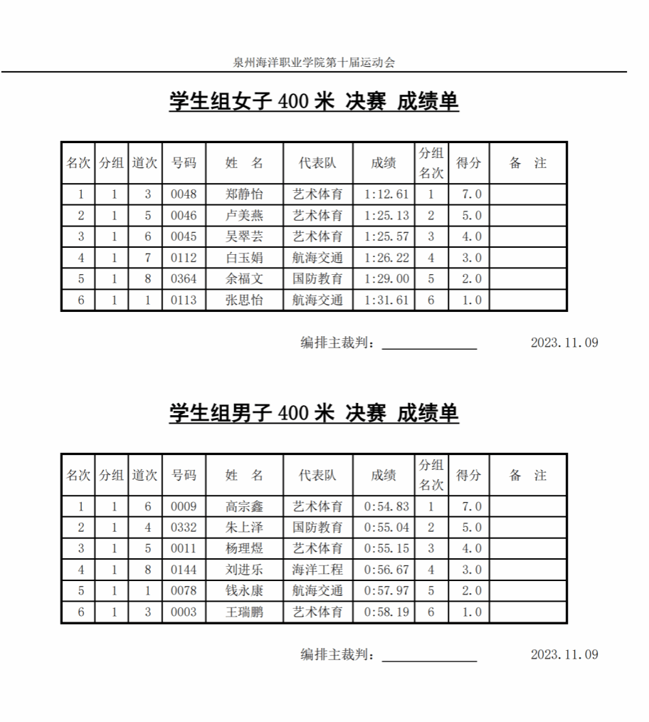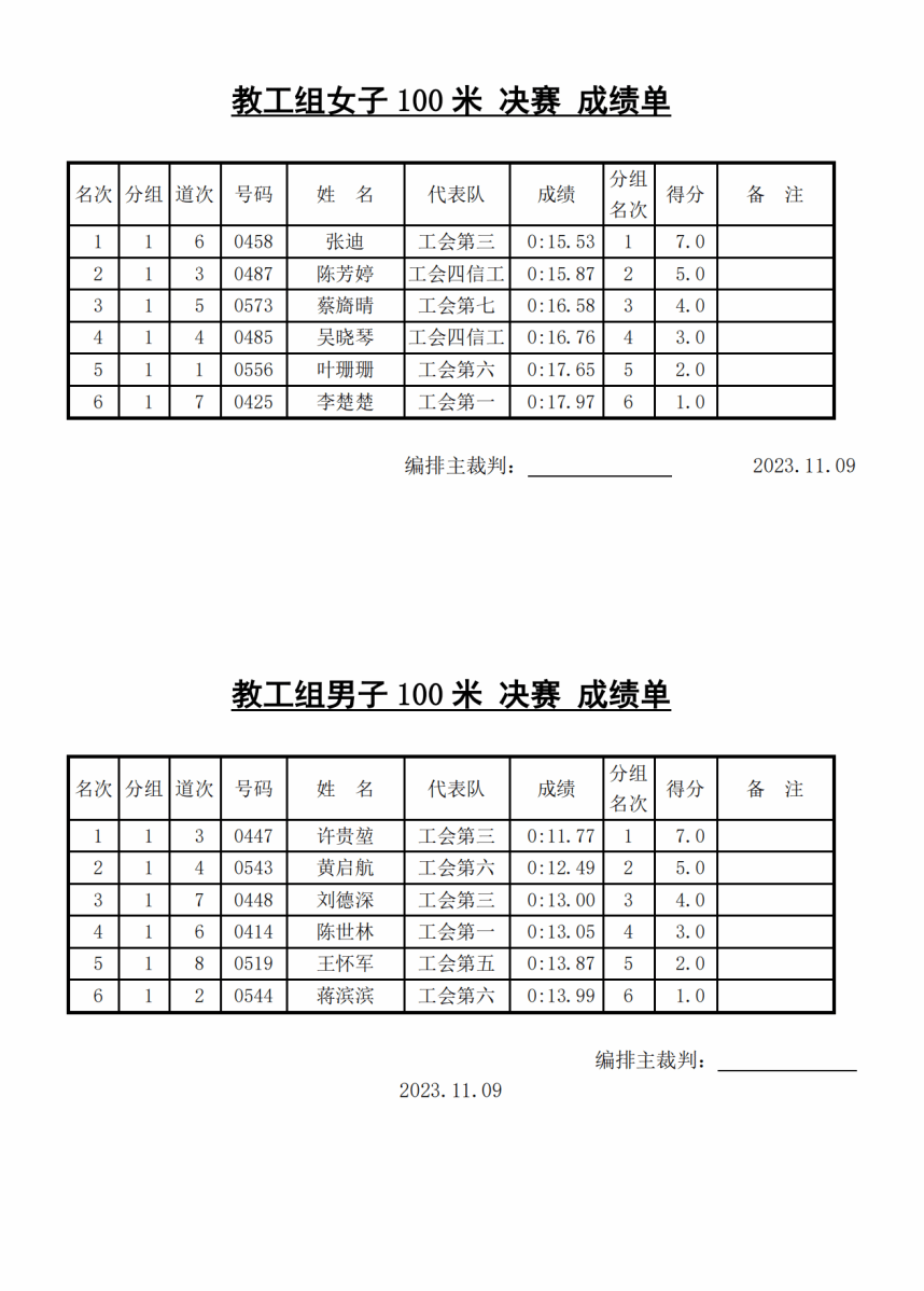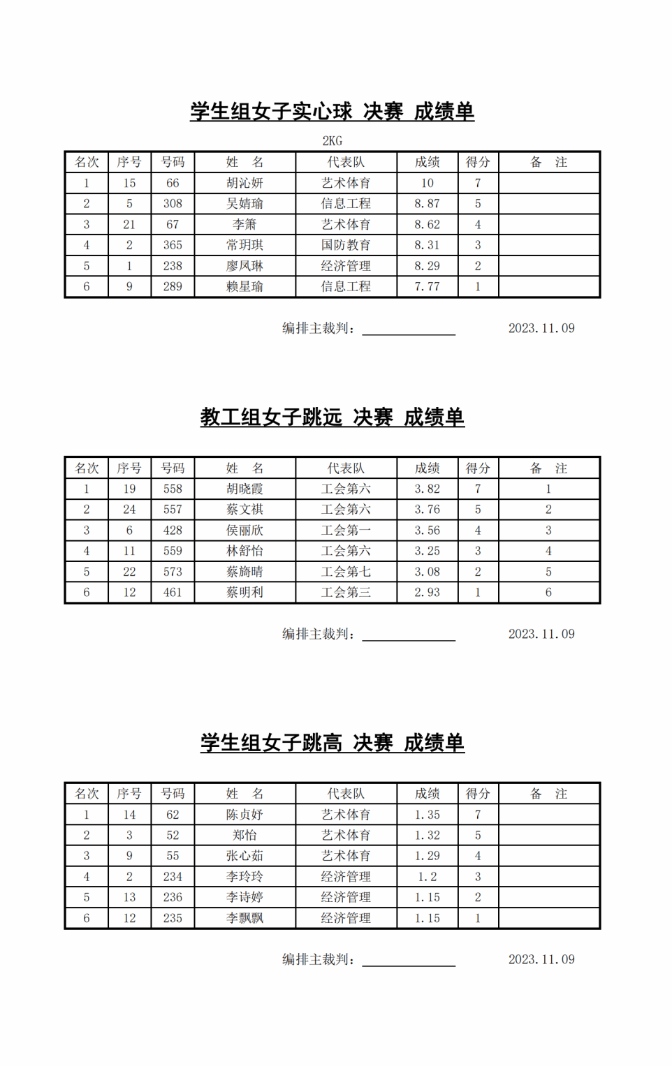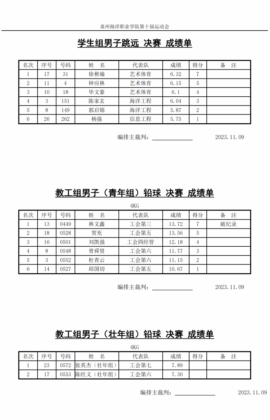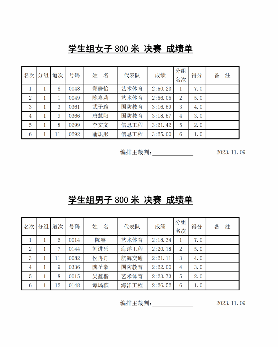 11月9日决赛成绩单