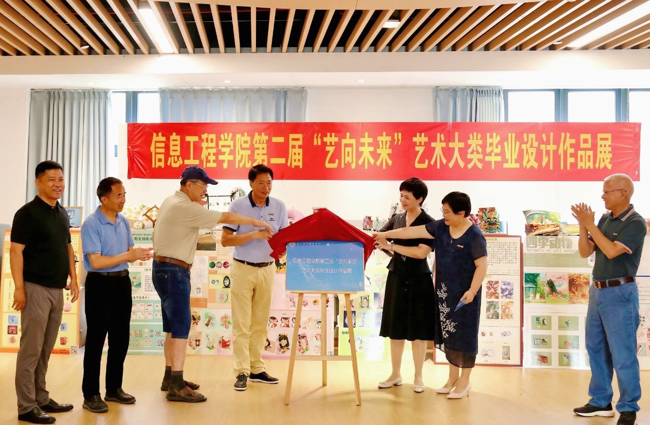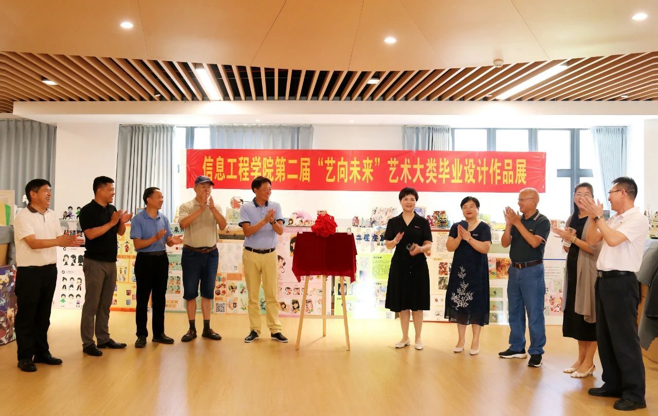 (新闻中心讯 信息工程学院颜洁雅供稿 校党委宣传部报道)6月25日上午,信息工程学院第二届“艺向未来”暨2025届艺术大类毕业设计展于学校图书馆一楼大厅正式开幕。学校校长庄伟廉,党委书记郑艳,副校长唐学学,副校长钱学东,党委副书记、副校长李明灿,副校长、信息工程学院党支部书记栾璋宝,信息工程学院院长贾超,各学院、职能部门负责人代表莅临现场为作品展揭牌。