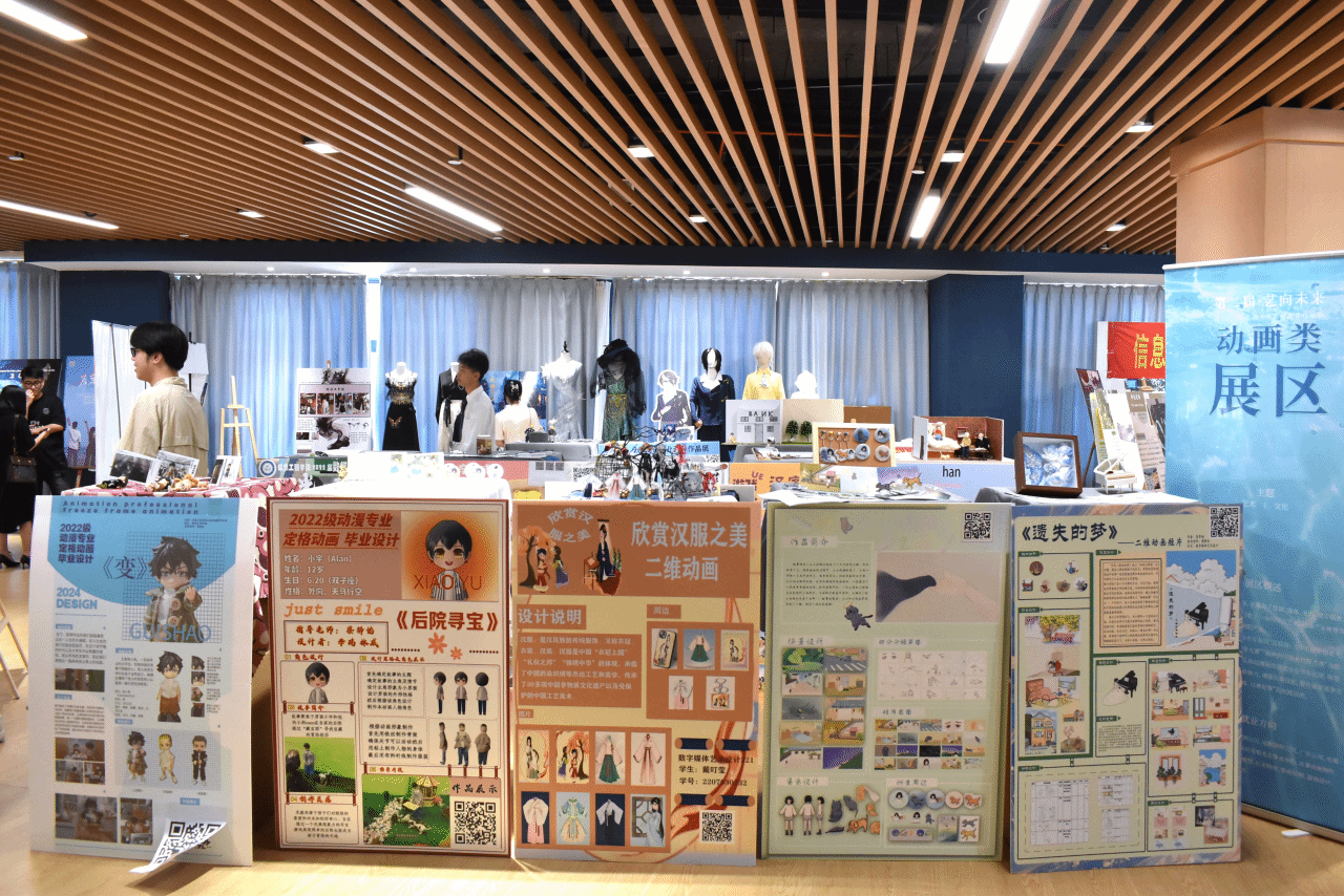 本次毕业设计展聚焦于地域文化、海丝之韵、中国传统文化等多元化角度出发展开设计。由信息工程学院2022级艺术设计、数字媒体艺术设计、室内设计、影视编导、动漫制作技术及2020级艺术设计五年制6个专业806名毕业生共同完成,共遴选360余组优秀作品展出,涵盖室内设计、文创产品、影视动画、三维角色模型、微电影等类别。作品从二维平面延伸至三维立体,体现了传统与时尚、个性与创新的紧密结合。