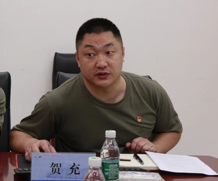 贺充围绕着学院的基本情况、党团工作、学生思政工作及安全工作等方面作了汇报。