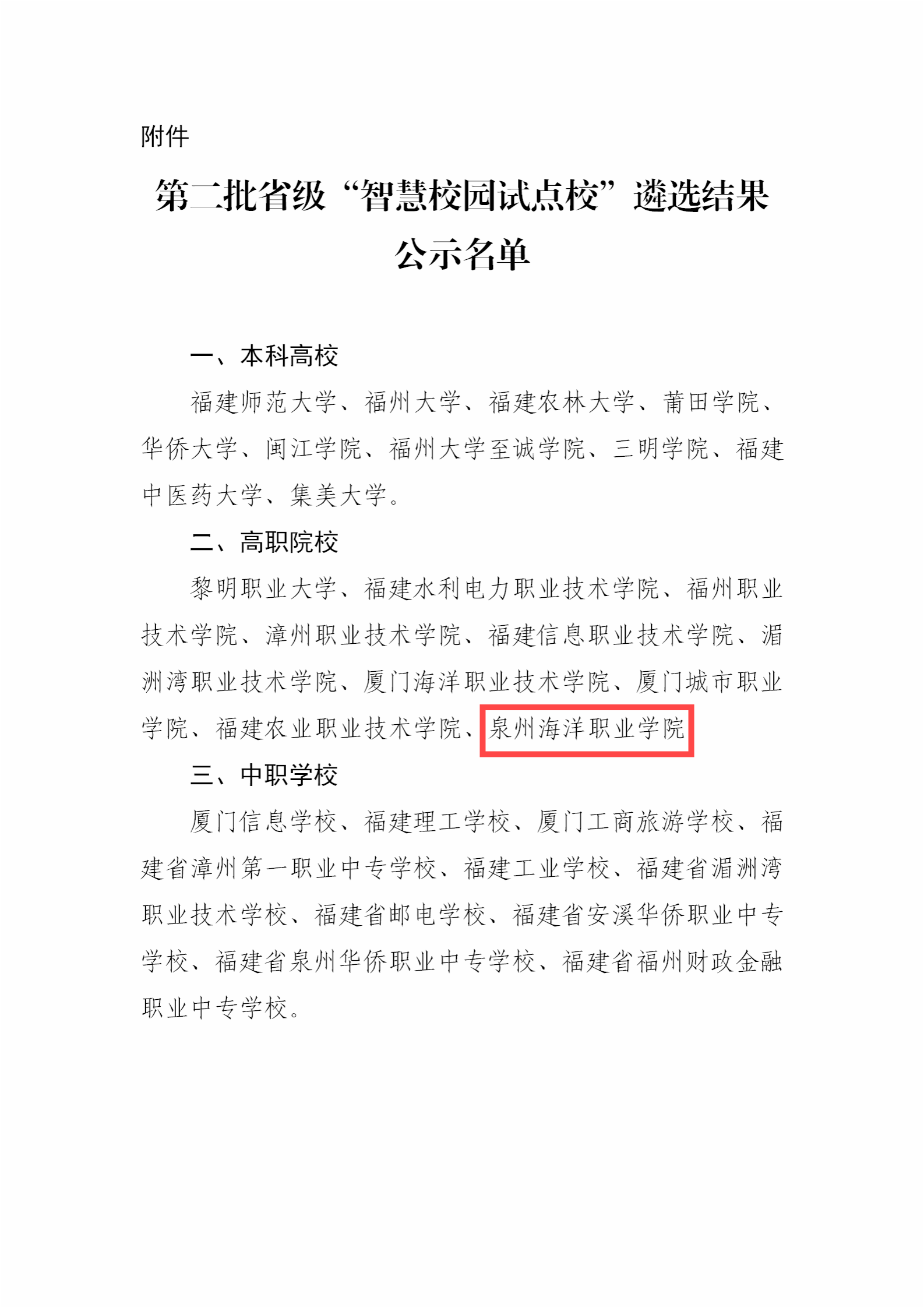 (新闻中心讯 党委宣传部供稿 校党委宣传部报道)近日,福建省教育厅正式公布了第二批省级“智慧校园试点校”遴选结果。经过学校推荐、专家评审,学校成功入选第二批省级“智慧校园试点校”,是福建省唯一入选的民办高职院校。