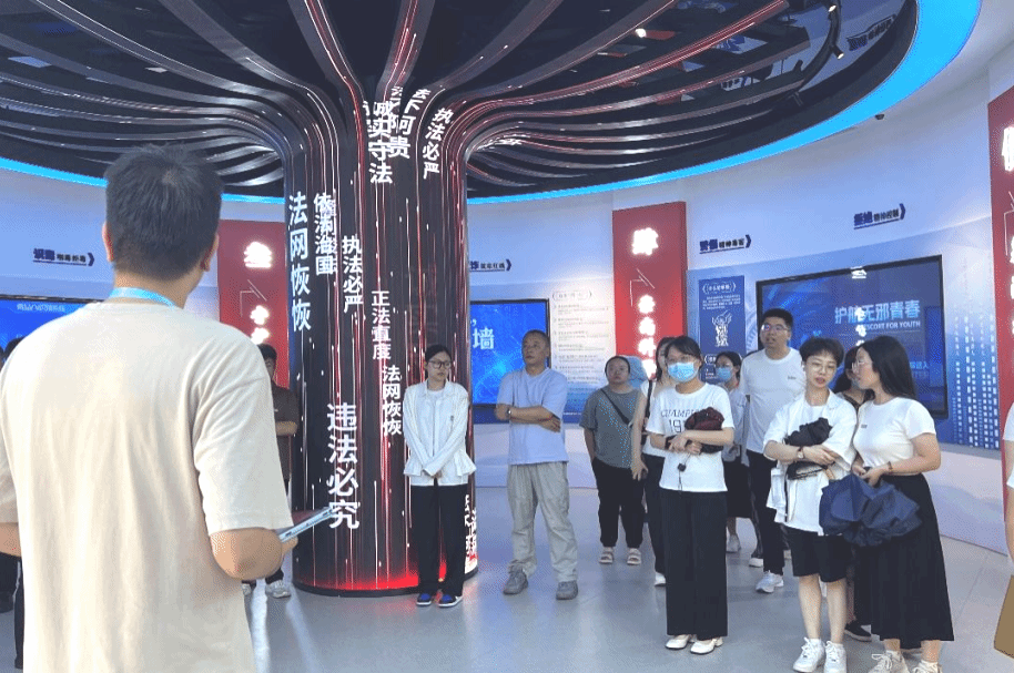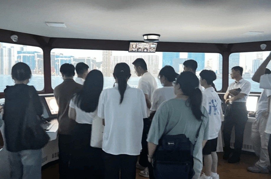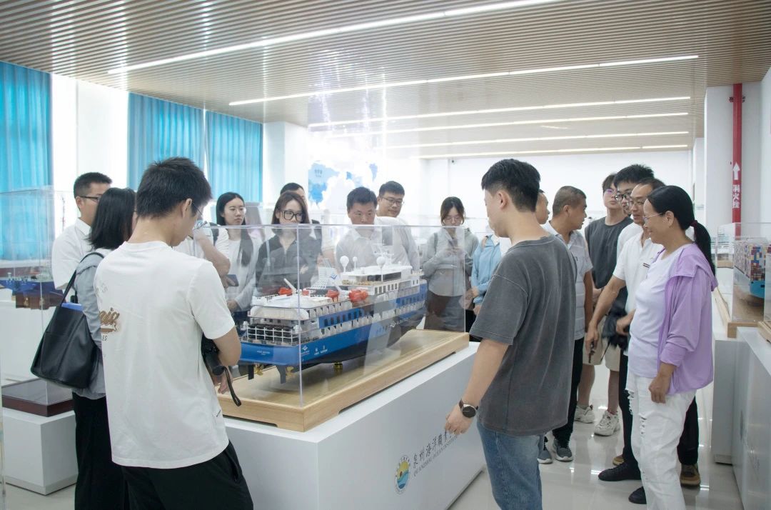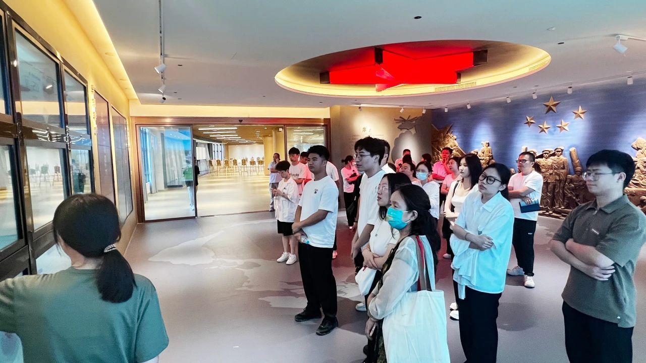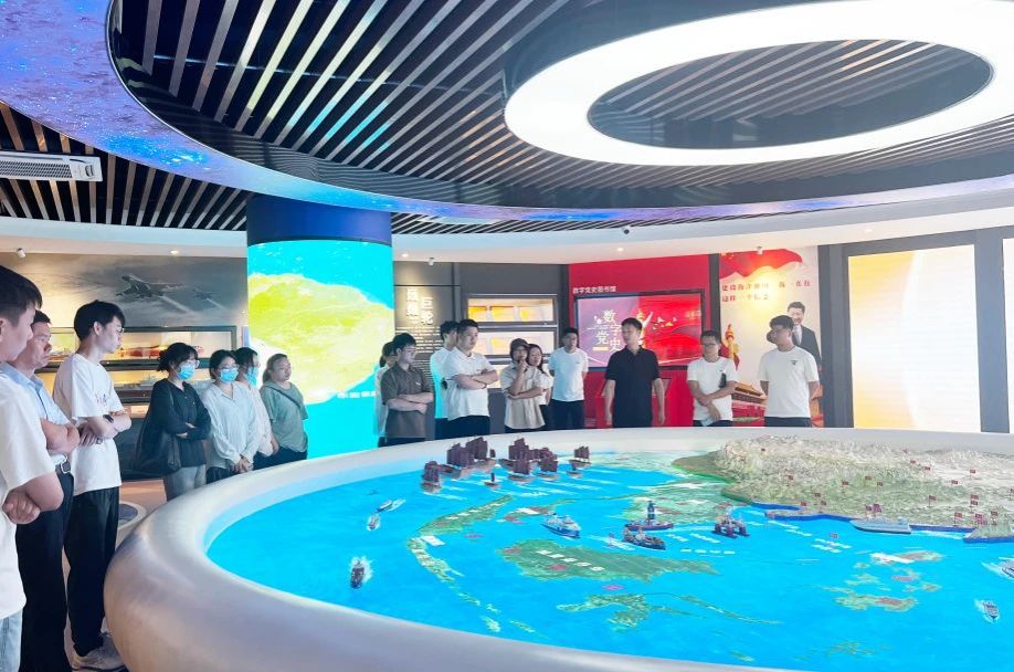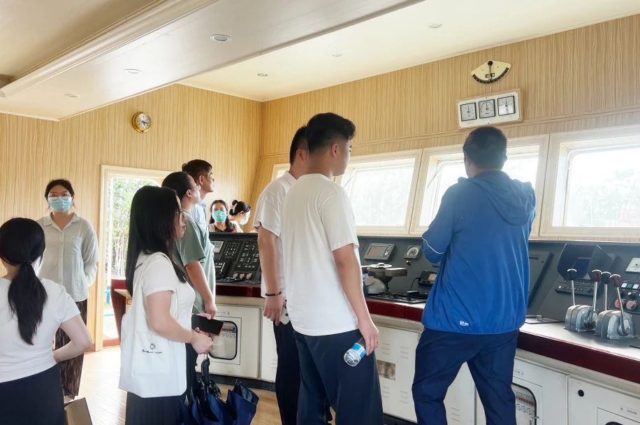 党委宣传部部长兼党政办公室副主任李怡然带领新进教职工参观360°全视景船舶操纵模拟器、海权红馆、国防科技馆、海洋科技馆、普法教育基地、世界特种船舶展厅、学校可行驶特种船(育航号)。