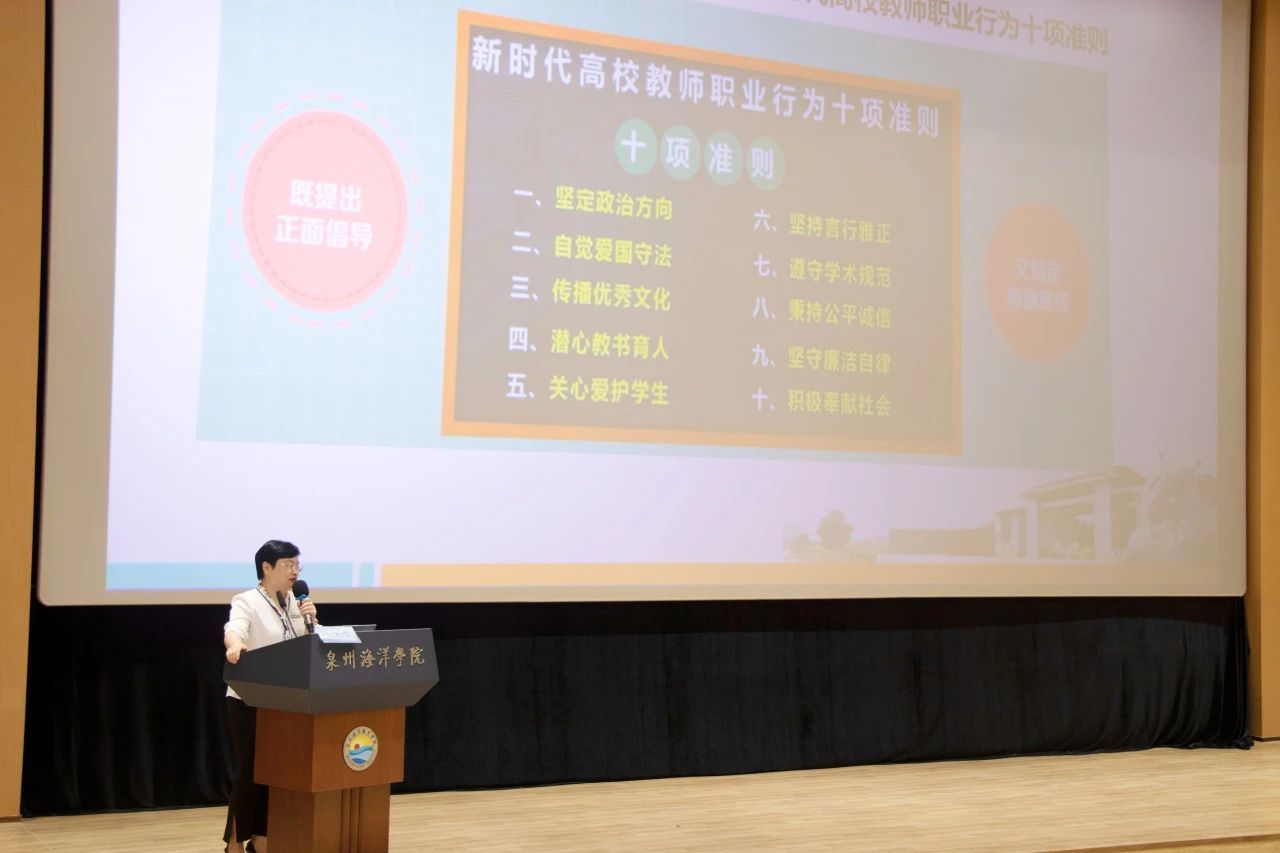 郑艳书记带领全体新进教职工进行泉州海洋职业学院师德师风宣誓。