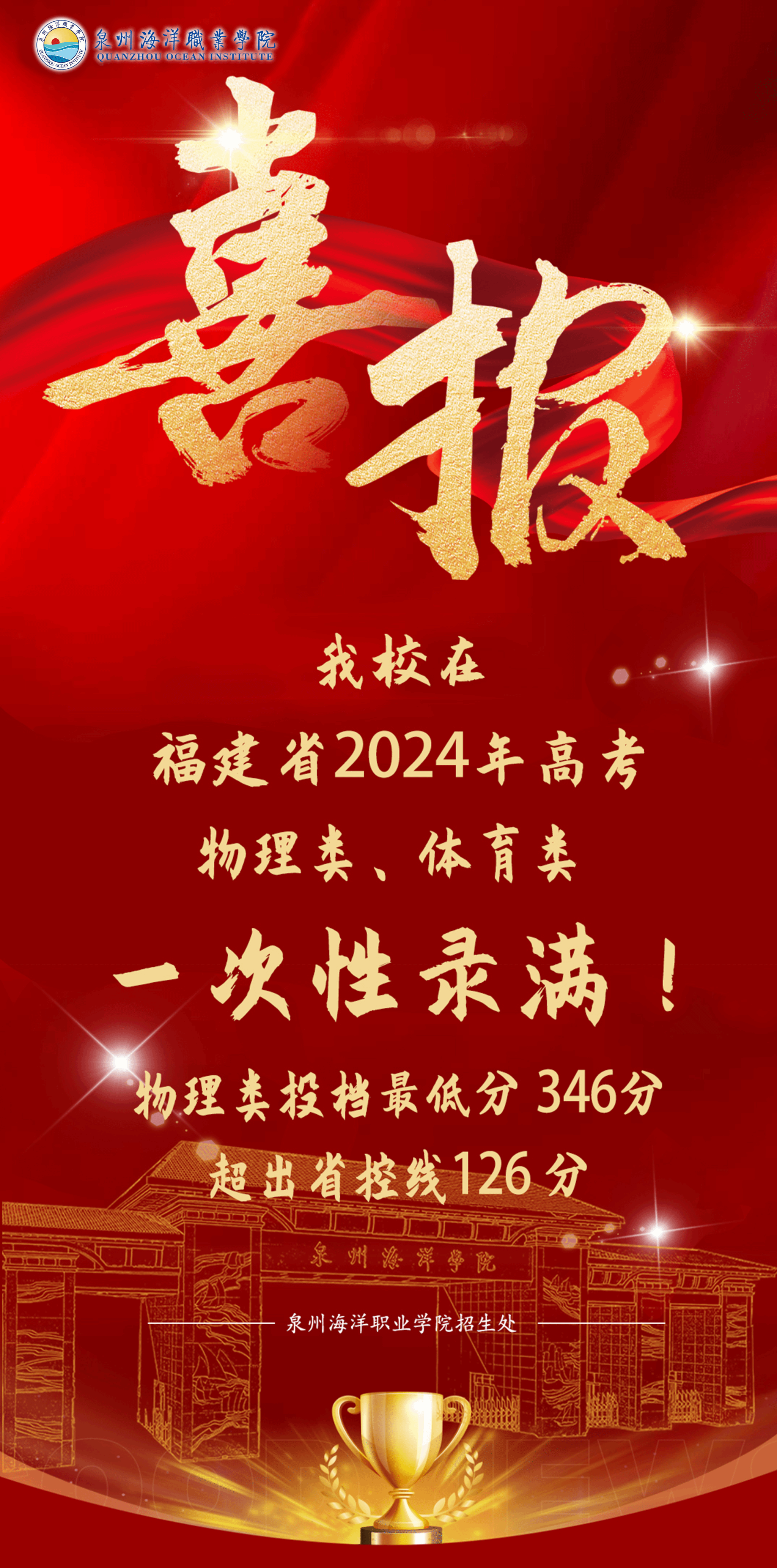 2024年8月10日晚,福建省普通高考专科普通批投档结果出炉。今年我校的录取分数线、生源质量均有不同幅度的提高,分类别、分专业录取成绩呈现“百花齐放”的喜人形势。
