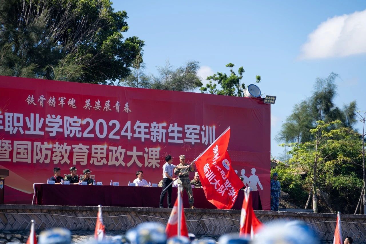 校党委副书记、副校长李明灿向新训大队队长授旗。