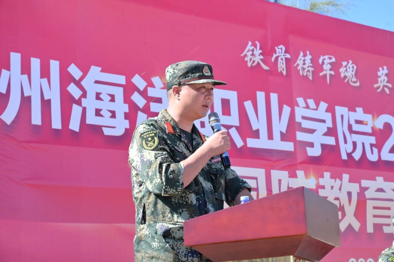新训大队指导员、学工部部长张君部署《泉州海洋职业学院2024年新生军训工作》。