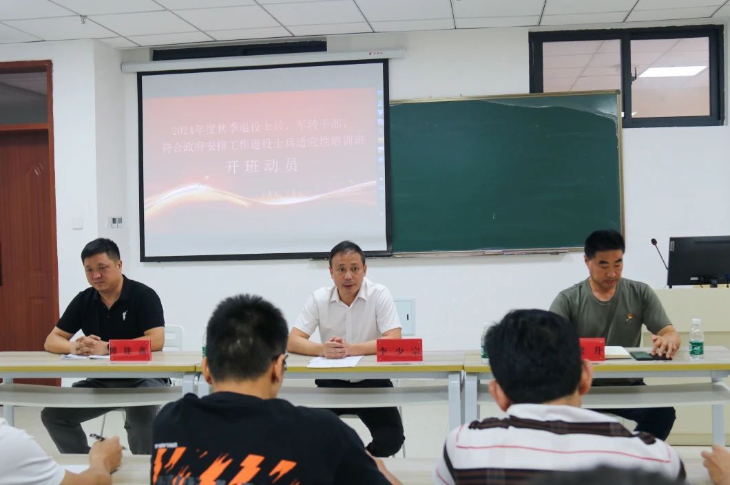 开班仪式上,曾繁升首先对学院的基本情况进行了介绍。他提到,学校长期以来致力于退役军人的教育培训工作,通过提供适应性培训、职业技能培训和学历教育等,助力退役军人顺利实现从军事到民用的角色转变。曾繁升还强调了退役军人在国家发展和社会建设中的重要作用,并对参与培训的退役士兵、转业军官表达了诚挚的欢迎和良好的祝愿。他表示,学院将全力以赴,为退役军人提供高质量的教育资源和培训服务,帮助他们开启新的人生篇章。