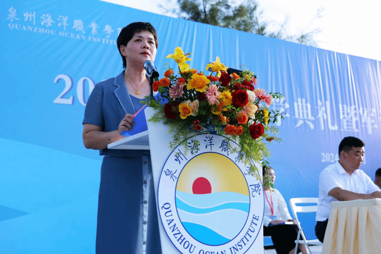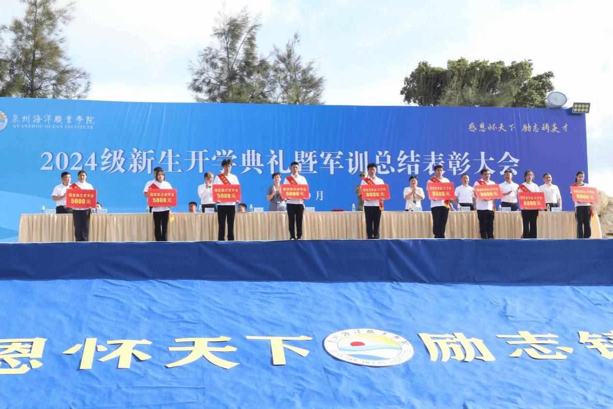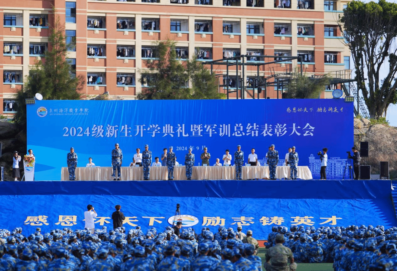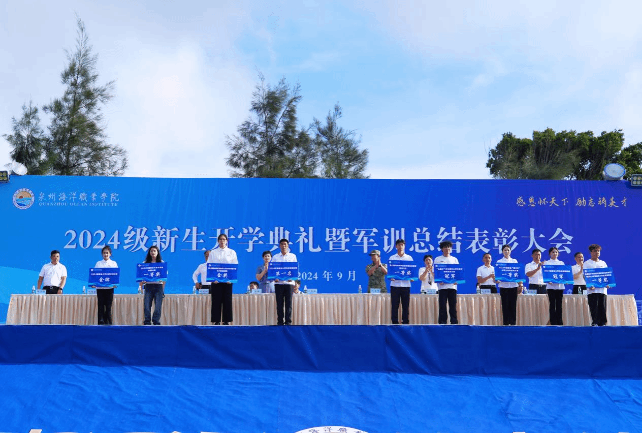 军训工作办公室主任、学工部部长张君宣读《泉州海洋职业学院关于表彰2024年新生军训优秀教官、优秀标兵、优秀组织单位的决定》。