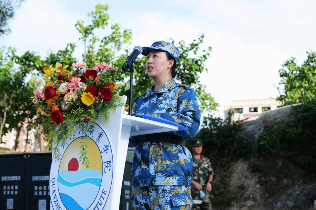 2024级航海交通学院高铁专业梁焕淇代表新生向教官们、老师们表示感谢,并分享了在军训期间的收获、成长以及所经历的感动时刻。梁焕淇同学表示,将以军训为起点,怀揣着梦想和希望,充分发挥自己的专业技能,用智慧和汗水创造出有价值的成果,为未来的职业生涯做好充分的准备。
