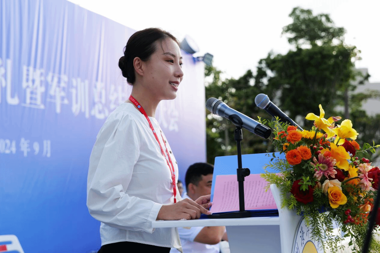 郑艳书记代表学校向新同学表示欢迎,向承担本次军训任务的部队领导官兵们表示衷心感谢。她表示,新时代是奋斗者的时代,在过去的两周,同学们以饱满的热情、昂扬的斗志,展现了新时代青年的蓬勃风采,并提出了三点希望:一要立鸿鹄之志,担时代之责。希望同学们要像为国争光的奥运健儿一样,心怀家国,志存高远,用实际行动践行“请党放心,强国有我”的青春誓言;二要勤学善思,知行合一。要珍惜时光,刻苦学习,不断拓宽知识视野,提升专业素养,练就过硬本领。同时,要注重实践锻炼,主动走出校园,将所学知识用于实际生活,做到学以致用、知行合一;三要勇于创新,积极应对变化。希望同学们能积极融入时代创新,勇于探索未知领域,敢于挑战传统观念,用创新的思维和行动推动社会进步和发展。