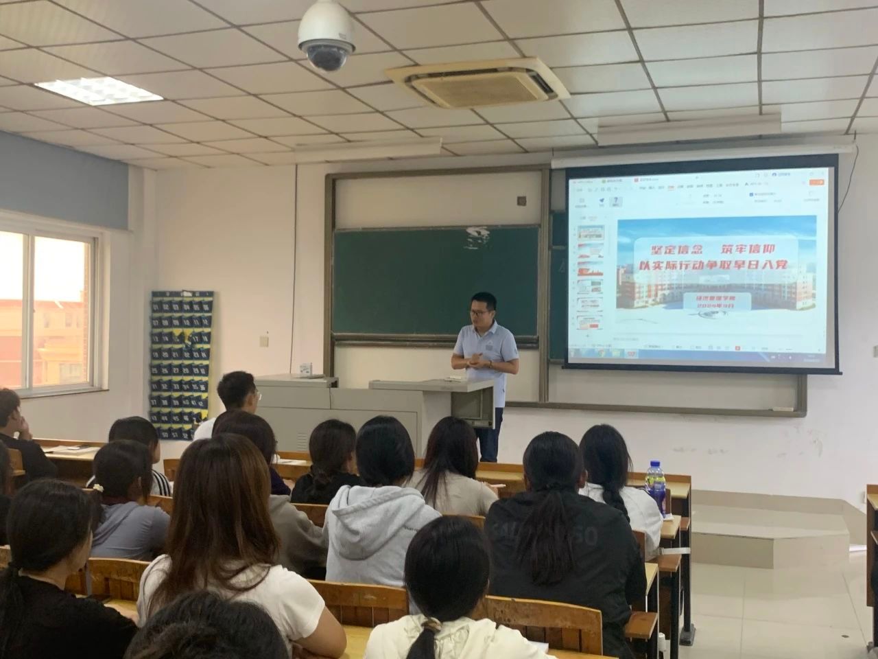 为激发青年大学生政治热情、做好筑牢理想信念根基的基础性工作,提高新生对党的认识,帮助学生树立知党、信党、入党的先进理念,号召学生及时向党组织靠拢,经济管理学院党支部书记林钊围绕理想与信念、入党的条件、发展党员的标准和原则以及阶段历程展开讲解,并鼓励新生要坚定理想信念,强化思想淬炼,合理规划大学生活,练就过硬专业本领,主动参与创新创业、学科竞赛等活动,不断突破“小我”,成就“大我”,努力把个人的理想追求融入党和国家事业之中。