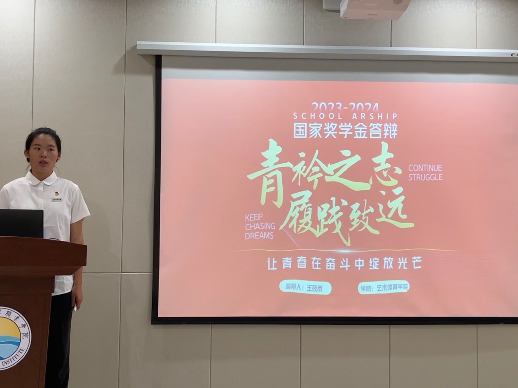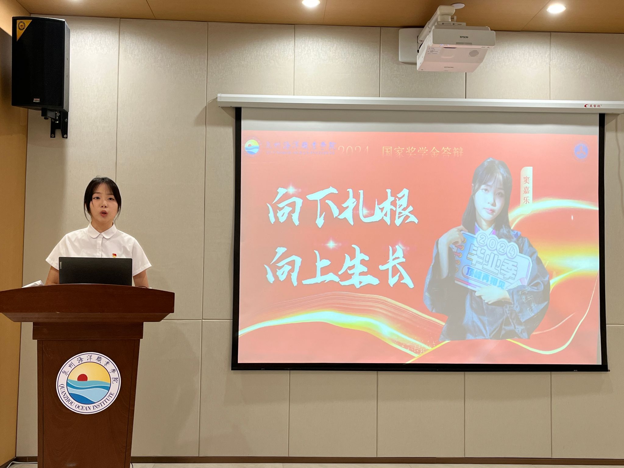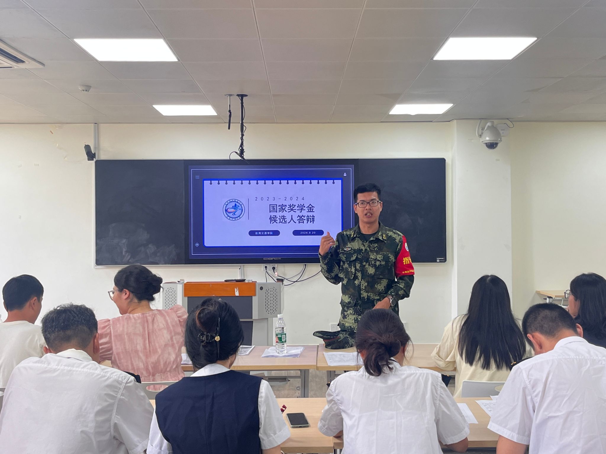 来自各二级学院的15名国家奖学金候选人依次登台,分别从个人学业、思想状况、专业竞赛、科研项目申报、社会实践服务等方面取得的成绩进行陈述,并接受评审提问。评审委员会成员根据学生现场表以及在校期间的学业成绩、获奖情况、社会实践等方面结合综合考量进行现场投票。