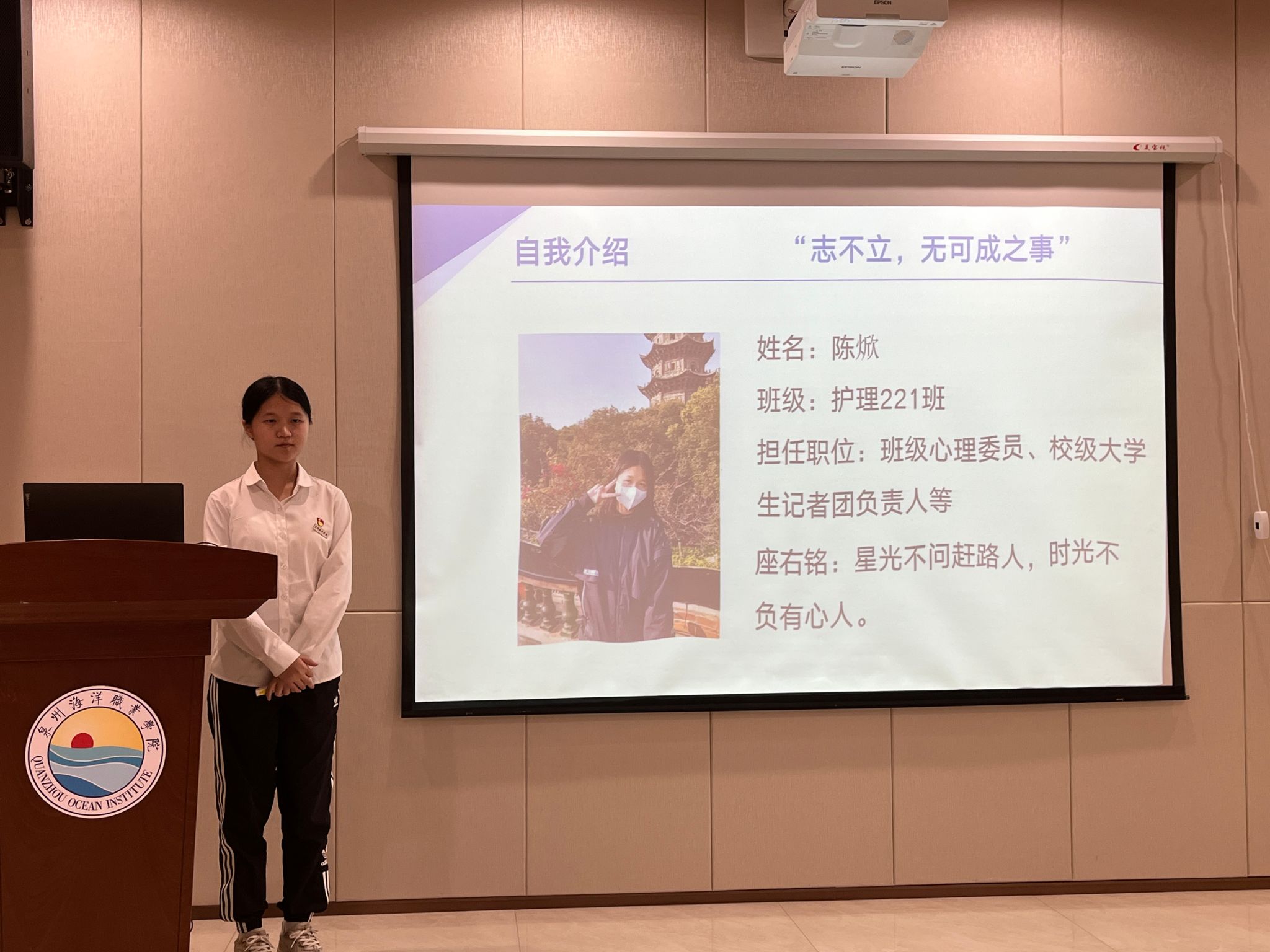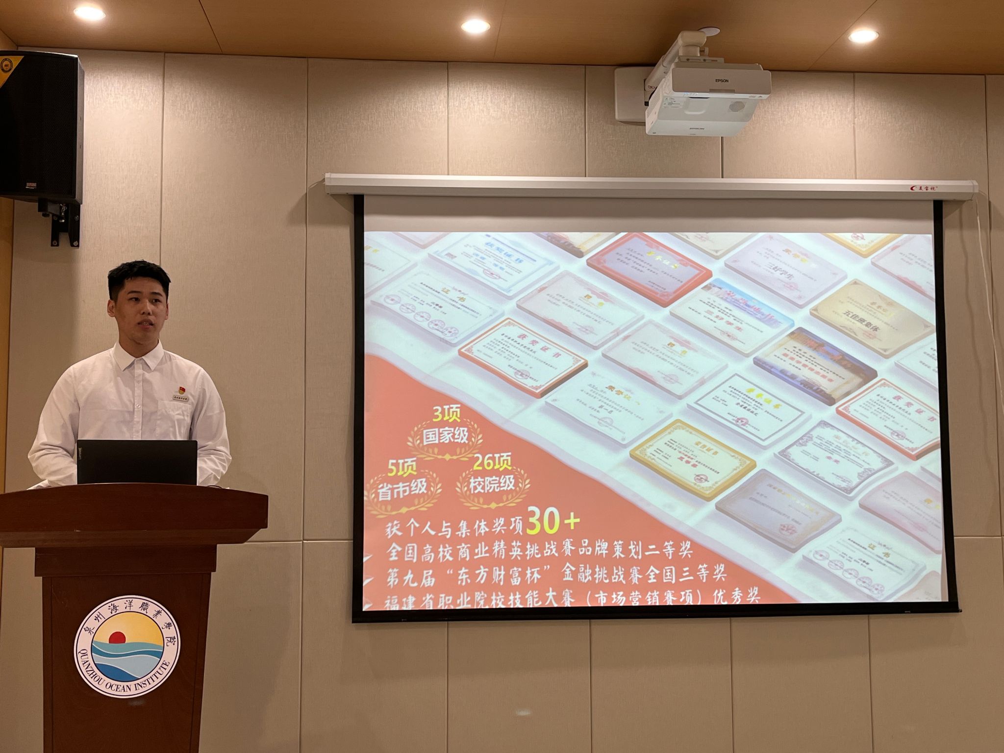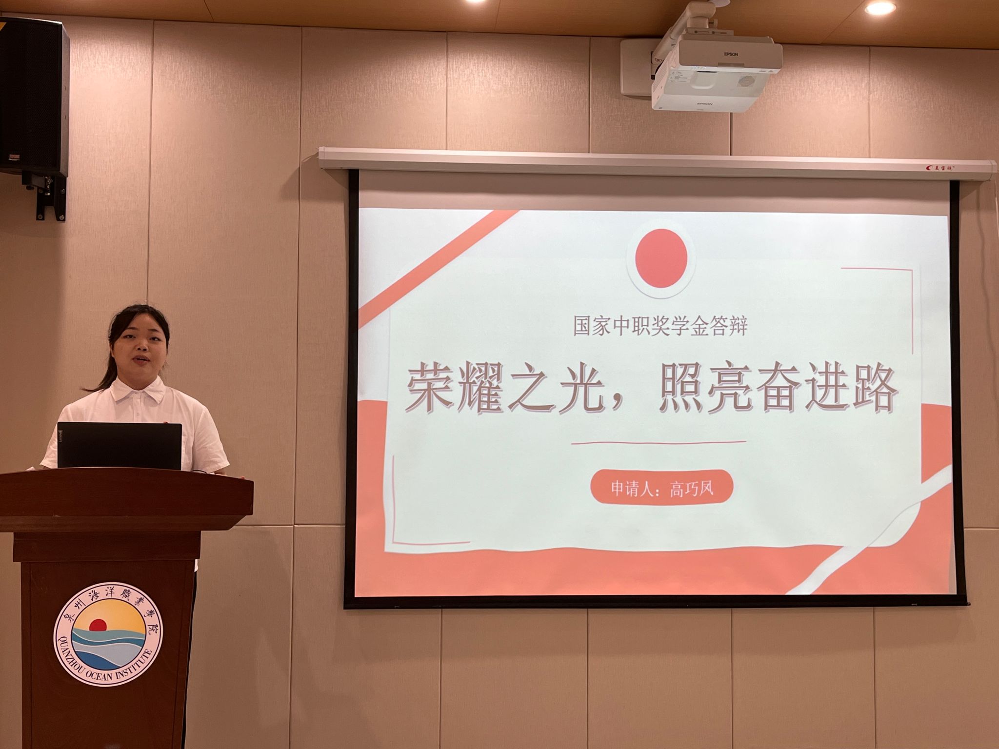 来自各二级学院的15名国家奖学金候选人依次登台,分别从个人学业、思想状况、专业竞赛、科研项目申报、社会实践服务等方面取得的成绩进行陈述,并接受评审提问。评审委员会成员根据学生现场表以及在校期间的学业成绩、获奖情况、社会实践等方面结合综合考量进行现场投票。