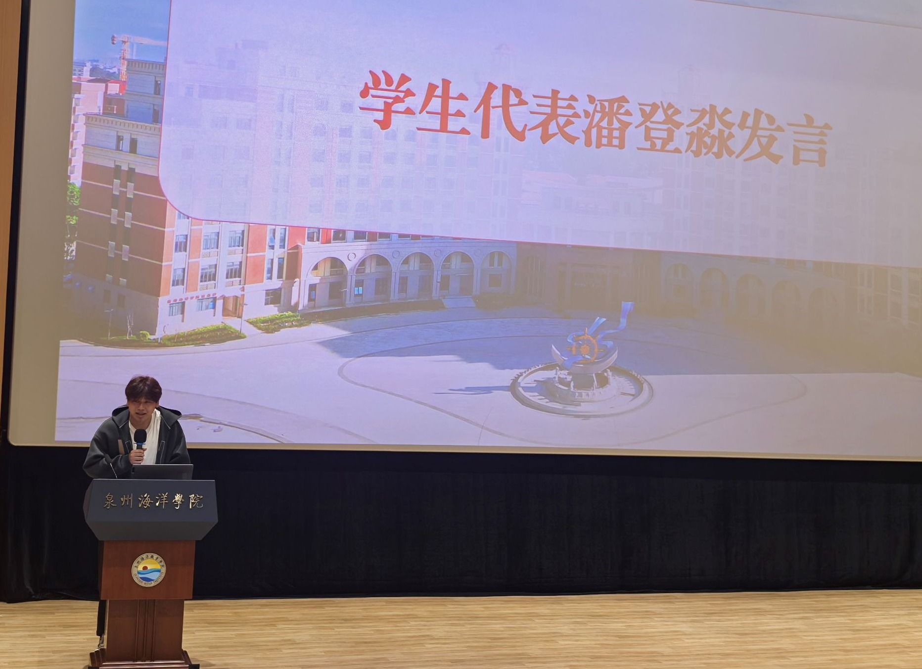 学生代表潘登淼表达了对实践周的热切期盼,并表示他将以饱满的热情和积极的态度投入实践活动,在实践中加深专业认知、提升实践技能,展现泉海学子风采,从而为今后的学习和工作打下扎实基础。
