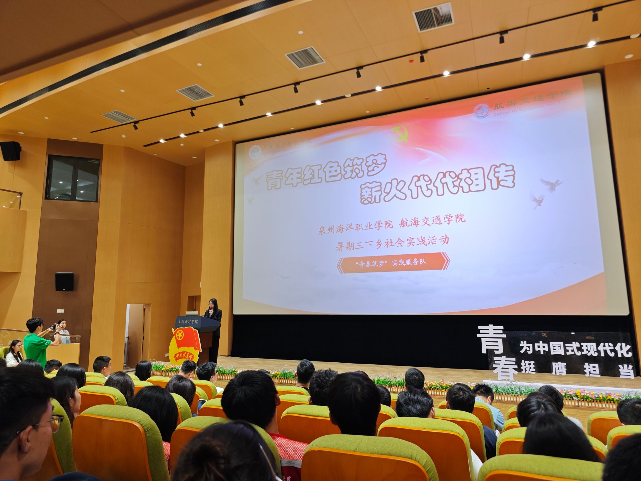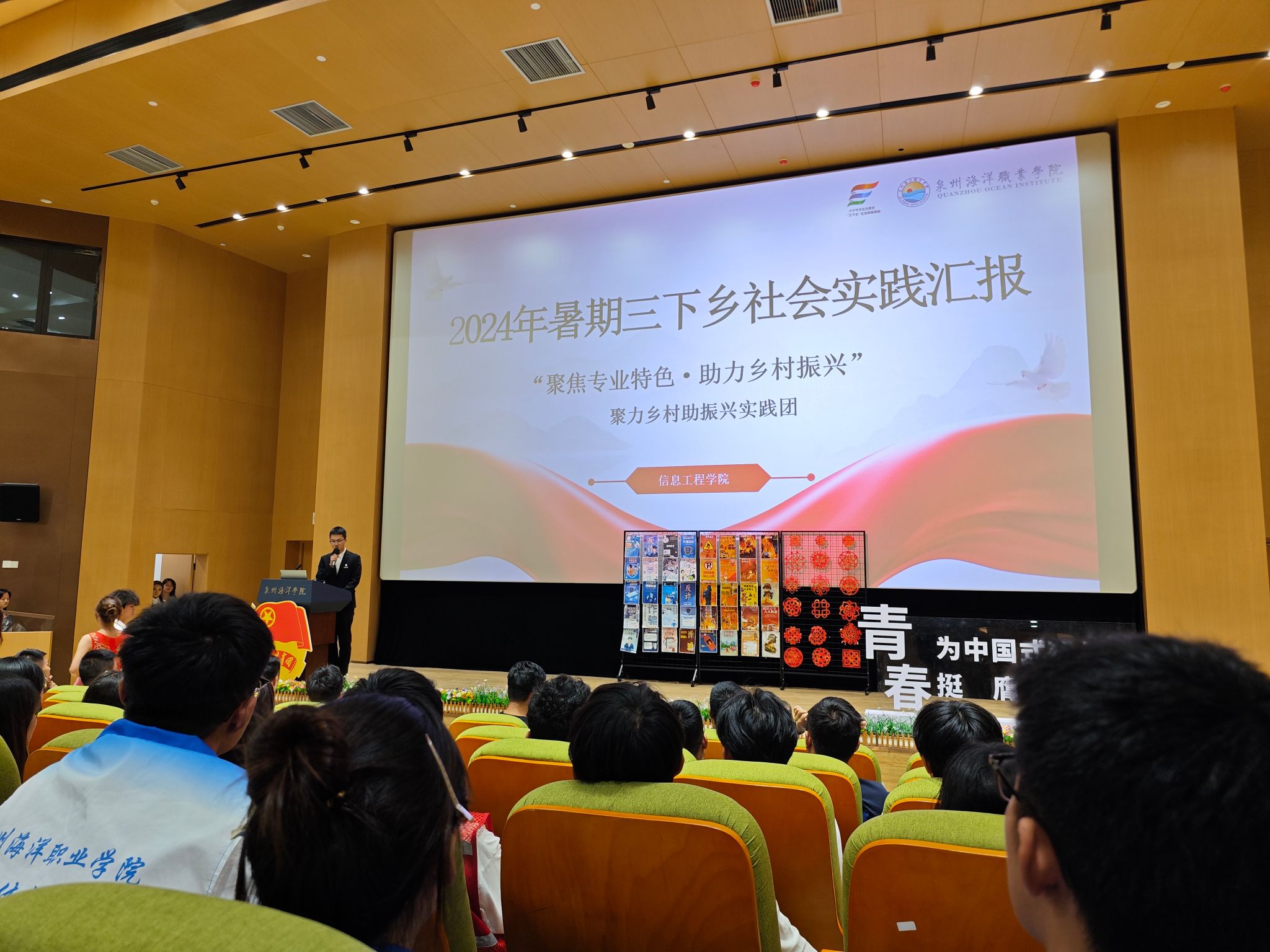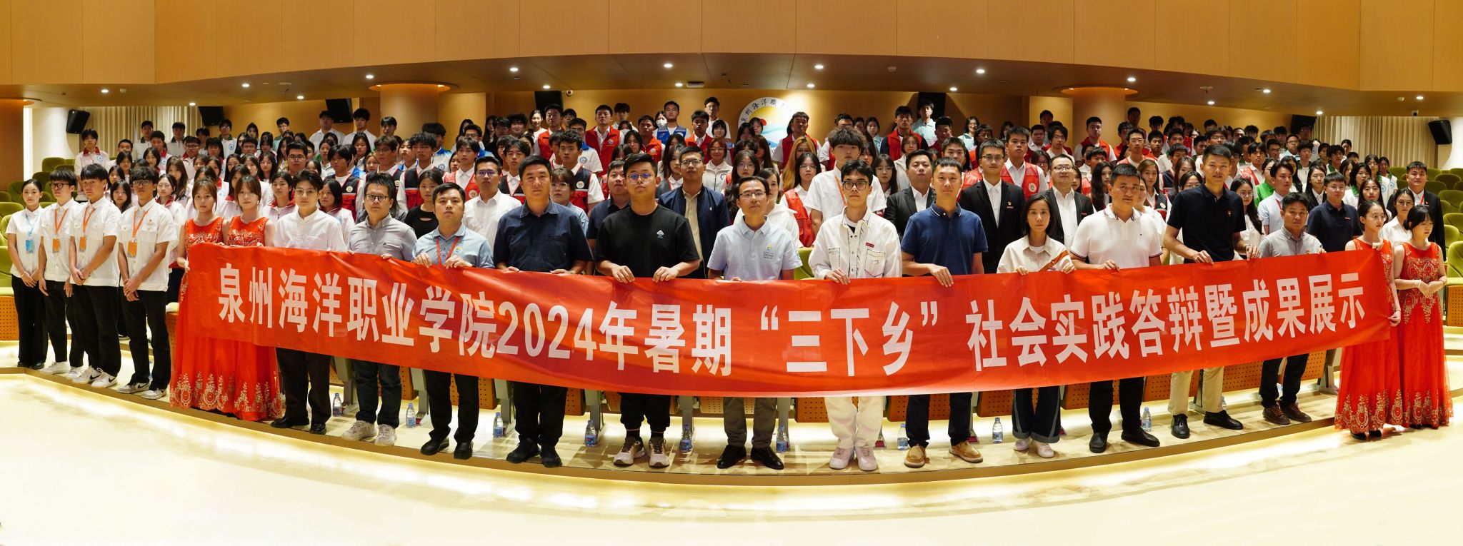 (新闻中心讯 校团委肖伟强供稿 校党委宣传部报道)近日,泉州海洋职业学院2024年暑期三下乡社会实践答辩暨成果展示在图书馆二楼报告厅举行。我校党委副书记、副校长李明灿,石狮团市委干部陈文杰,闽南理工学院校团委蔡庭和,及党政办、党委组织部、党委宣传部、党委学工部、各二级学院有关负责人出席会议,各项目指导老师和200余名社会实践学生代表共同见证。