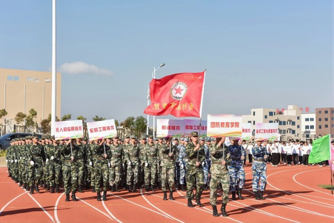 表演方阵是运动会的一大亮点。各个学院各出奇招,争妍斗艳。经济管理学院的舞蹈《山河图》承载着对祖国的热爱和对民族的自豪;海洋工程学院学子用行动诠释爱国情怀,演绎海上丝绸之路的辉煌历史;航海交通学院所呈现的舞蹈串烧,彰显了青春的风采,展现了青春的蓬勃活力;旗语操作、战术演练、擒敌技巧、硬气功展示……国防教育学院的学子们目光如炬,将力量与技巧融为一体,在每一个动作中彰显国防力量;信息工程学院键盘啦啦操表演《一路花开》,不仅是一场展示技艺的表演,更是一次艺术与创新的完美融合;游艇帆船学院《相亲相爱》舞蹈是一种精神的传递,是一种团结和谐的象征。学子们用舞蹈传递着正能量,用汗水和努力诠释着青春的意义;艺术体育学院《石榴红了》以摇曳身姿、舒展大放的舞蹈,赞颂了各族人民如“石榴籽”一样紧紧相拥,团结奋进。