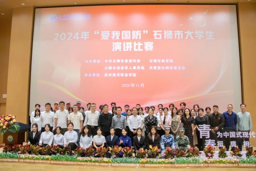 (新闻中心讯 党委宣传部报道)传递国防之“声”,厚植家国情怀!11月11日,2024年“爱我国防”石狮市大学生演讲比赛在泉州海洋职业学院图书馆二楼报告厅举行。来自石狮3所高校的24支队伍、44位选手齐聚一堂,用他们的声音和热情,共同奏响爱我国防的时代强音!