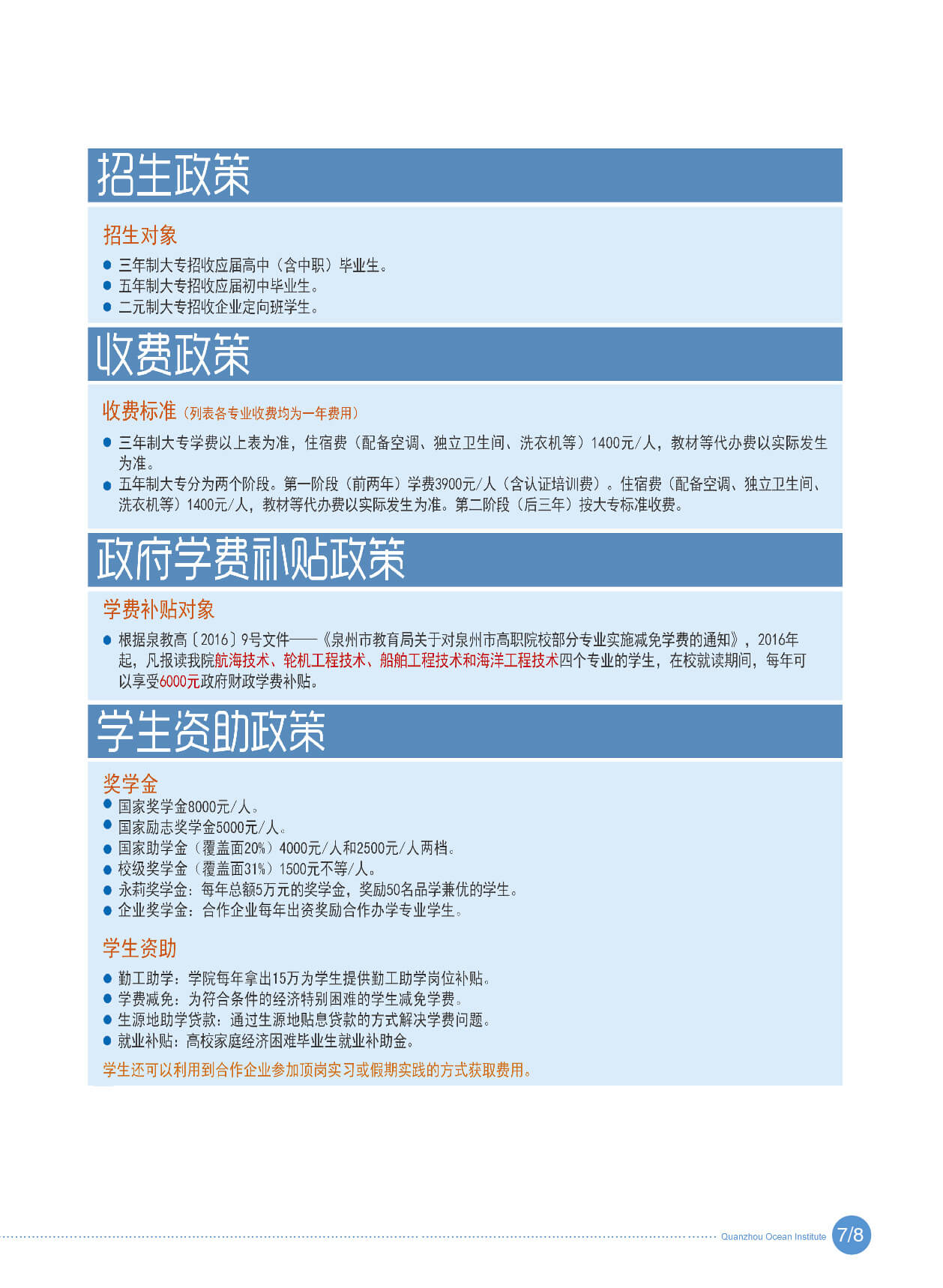泉州海洋职业学院2018年招生手册
