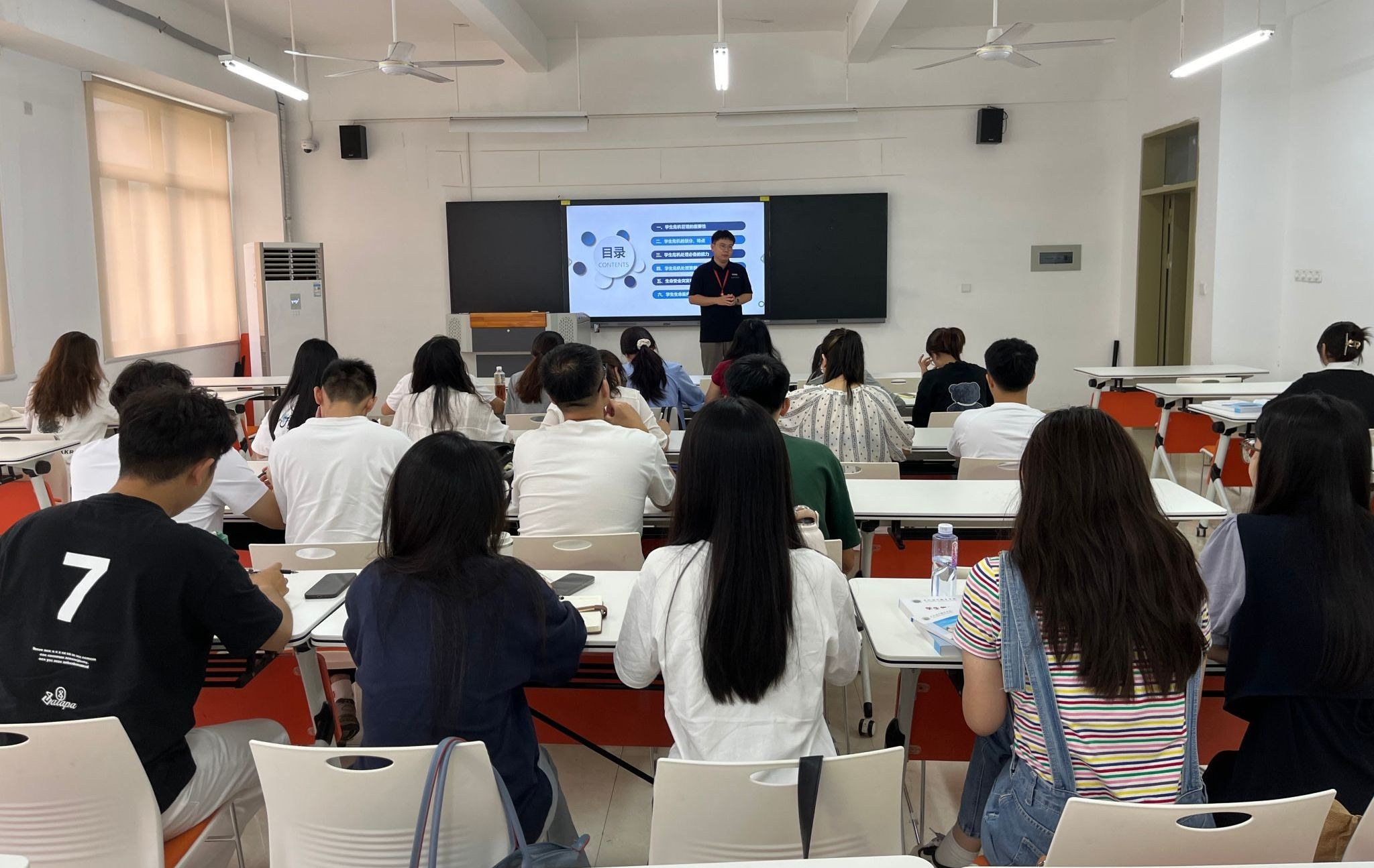 张君部长及学工部各科室负责人为新进辅导员作专题报告,内容涵盖学生思想政治教育、学生管理与服务、心理健康教育、学生资助管理、公寓社区管理、学生突发事件应急能力、辅导员职业发展、信息化建设等多个方面,引领辅导员深入了解学生工作重点,精准把握学生工作新形势、新任务、新要求。