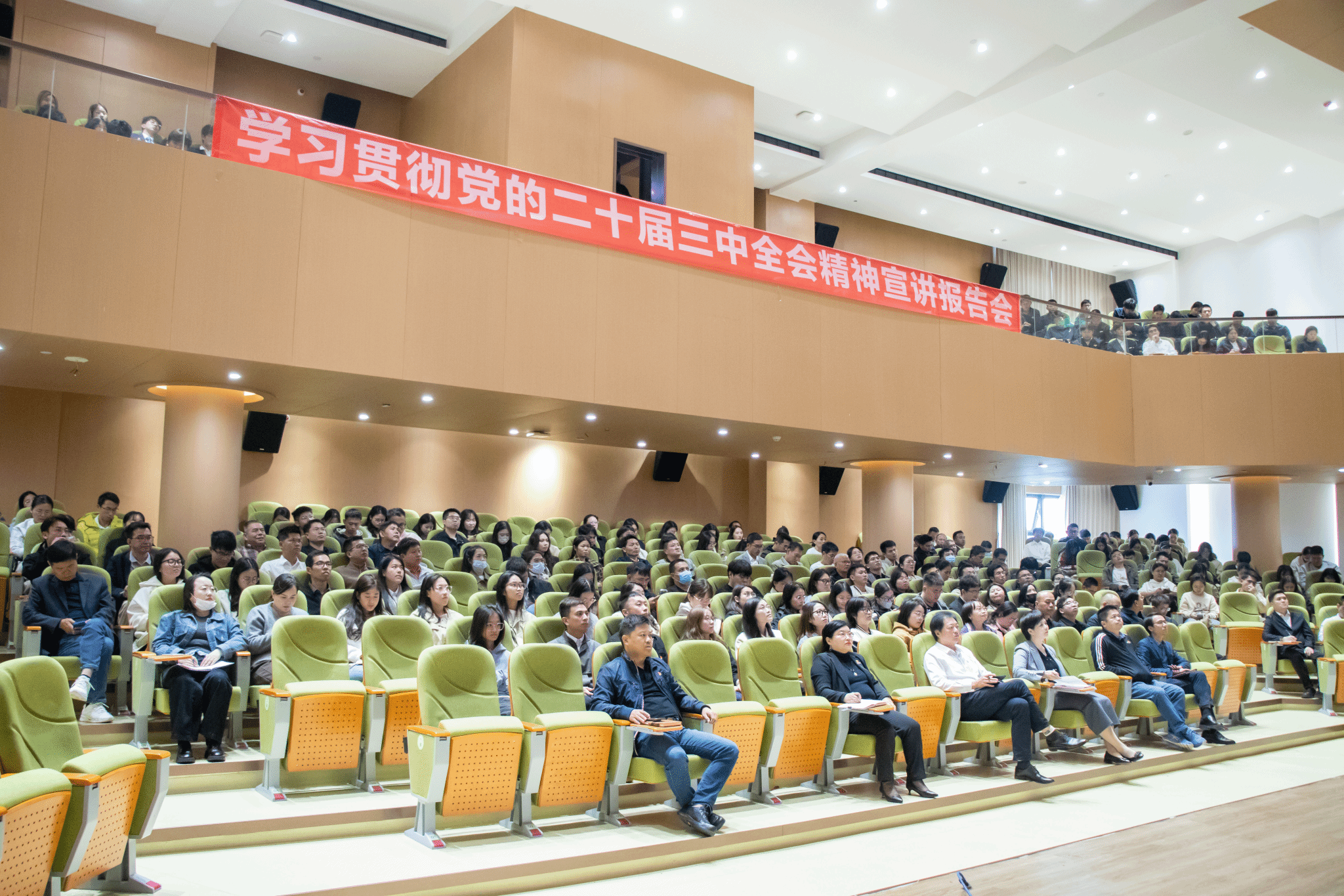 “新征程上,靠什么来进一步凝心聚力、汇聚起推进中华民族伟大复兴的强大力量?”“答案就是靠中国式现代化!”报告会上,谢庆凤以“学习领会党的二十届三中全会精神 奋力推进中国式现代化”为题,紧紧围绕学习贯彻习近平总书记在党的二十届三中全会上的重要讲话和全会《决定》,从深刻领会进一步全面深化改革的重大意义,准确理解把握进一步全面深化改革的总体要求、重要举措等方面,紧密结合教育综合改革实际,通过理论阐释、形势分析、数据陈述等方式,对党的二十届三中全会精神进行系统阐述和深刻解读。整场宣讲会既全面系统又重点突出,既有理论高度又有思想深度,具有很强的针对性和指导性,深化了学校师生对党的二十届三中全会精神的理解和把握,更好用全会精神指导推进学校中心工作、解决实际问题、总结实践经验。