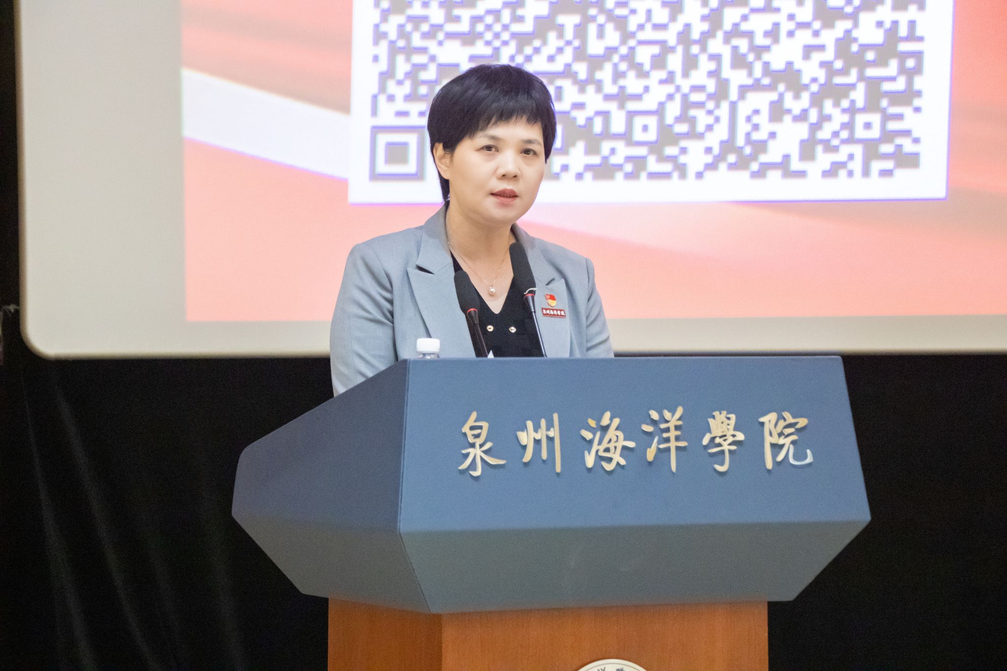 (新闻中心讯 党委宣传部报道)为深入学习宣传贯彻党的二十届三中全会精神,全面准确把握全会精神的丰富内涵和核心要义,引导全校师生把思想和行动统一到全会精神上来,切实将学习成效转化为干事创业的热情和推进建设高水平涉海类职业院校的强大动力,11月21日下午,学校举办学习贯彻党的二十届三中全会精神宣讲报告会。泉州市委宣传部部务会会议成员、泉州市委讲师团团长谢庆凤受邀做宣讲报告。学校党委委员、校领导、中层副职及以上干部、各基层党组织班子成员、党委职能部门成员、师生党员代表参加报告会。