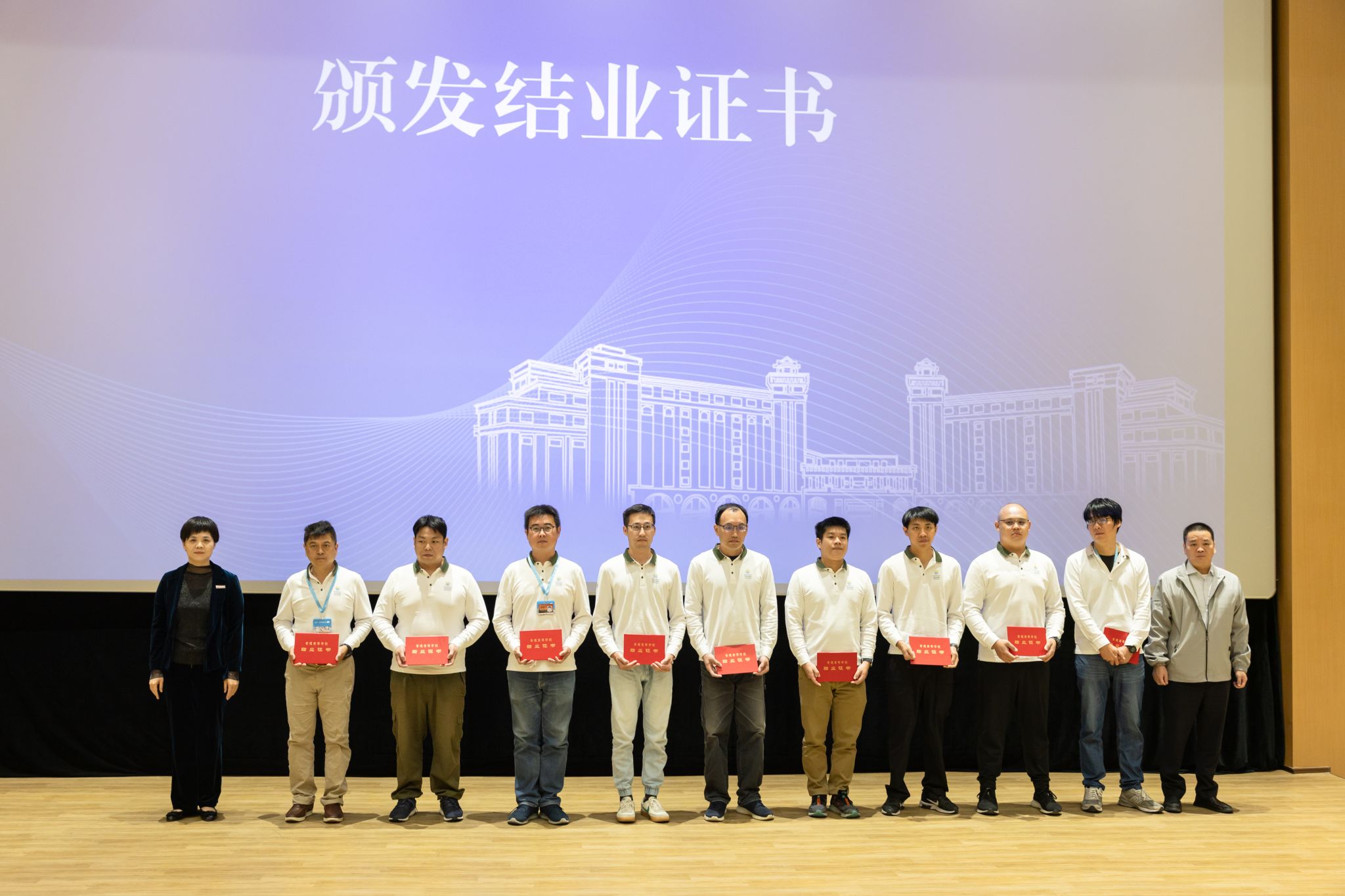 在结业典礼上,与会领导为顺利结业的台湾地区船员们颁发结业证书,并送上诚挚祝福。