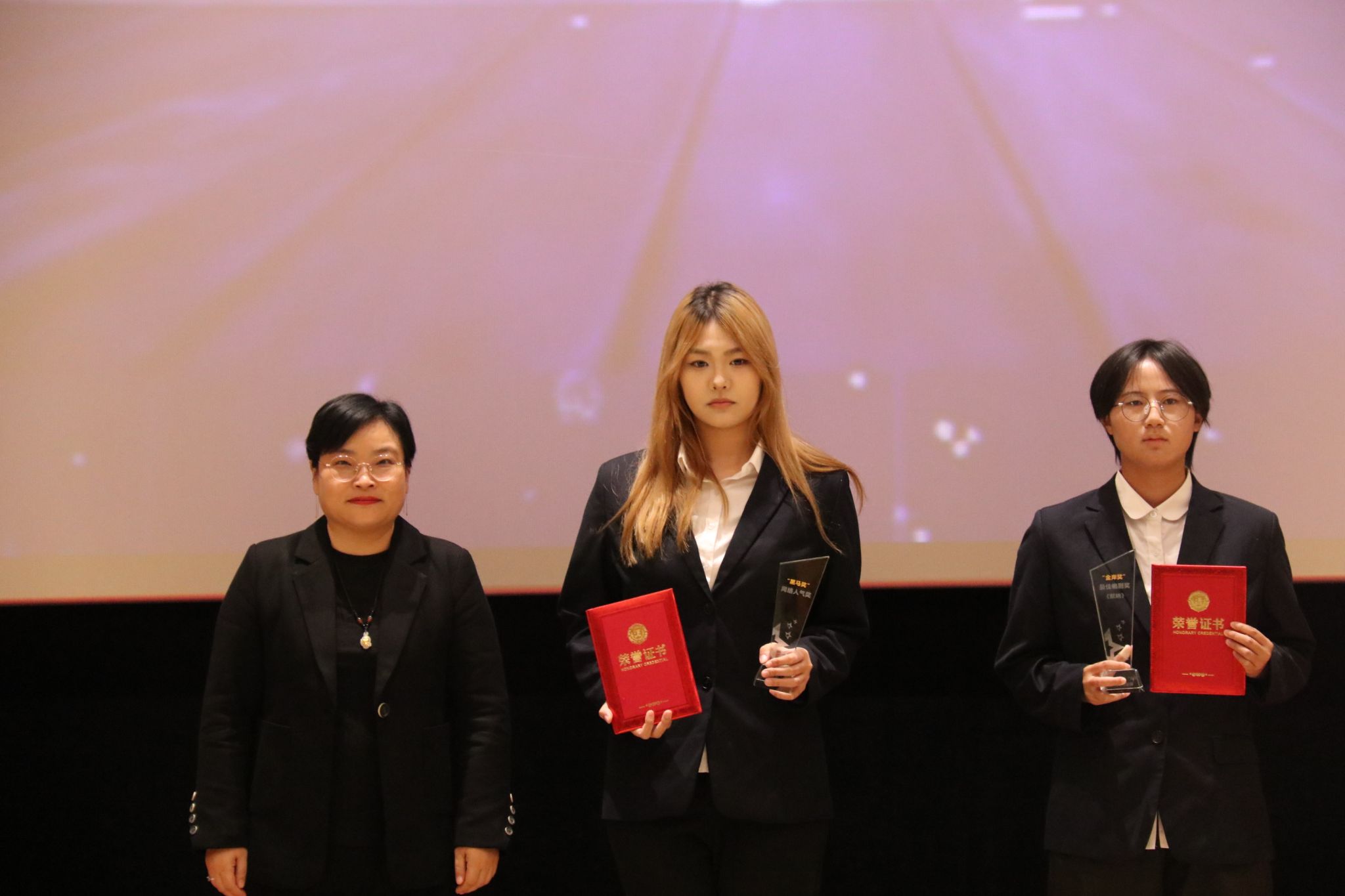 影视编导专业教师曾雨桐为荣获“金芒奖”(最佳导演奖)剧组《做自己的光》颁奖
