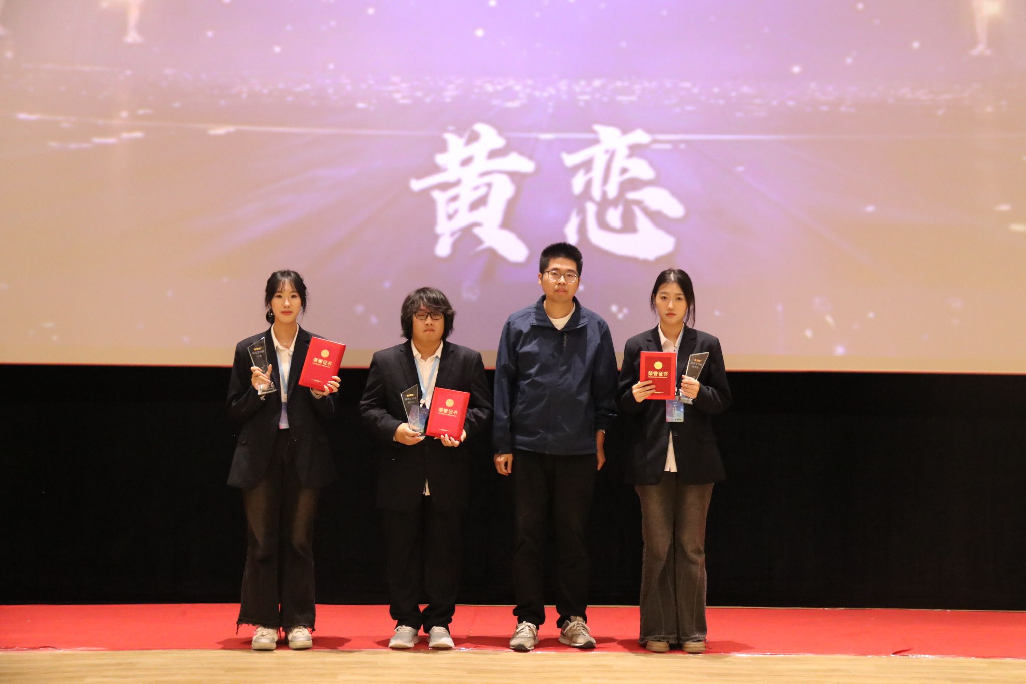泉州海洋职业学院常务副校长唐学学为荣获“黑马奖”(网络人气奖)剧组《猫鼠游戏》《默呐》颁奖