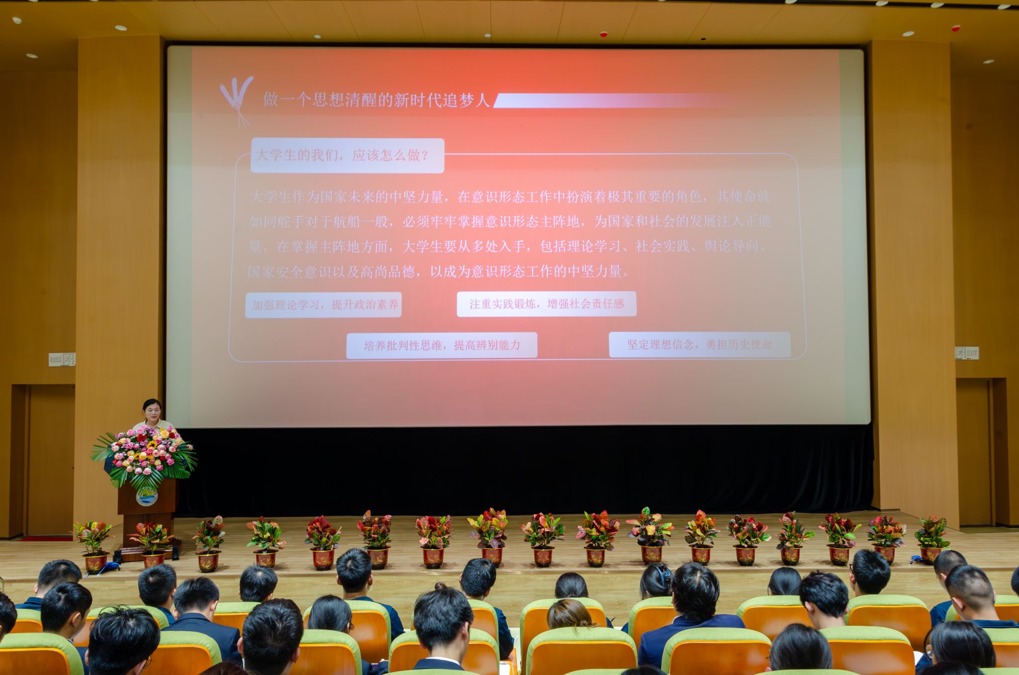 党委宣传部庄玲娥老师以“做一个思想清醒的新时代追梦人”为题,强调了意识形态工作的重要性,激励学员坚定理想信念。