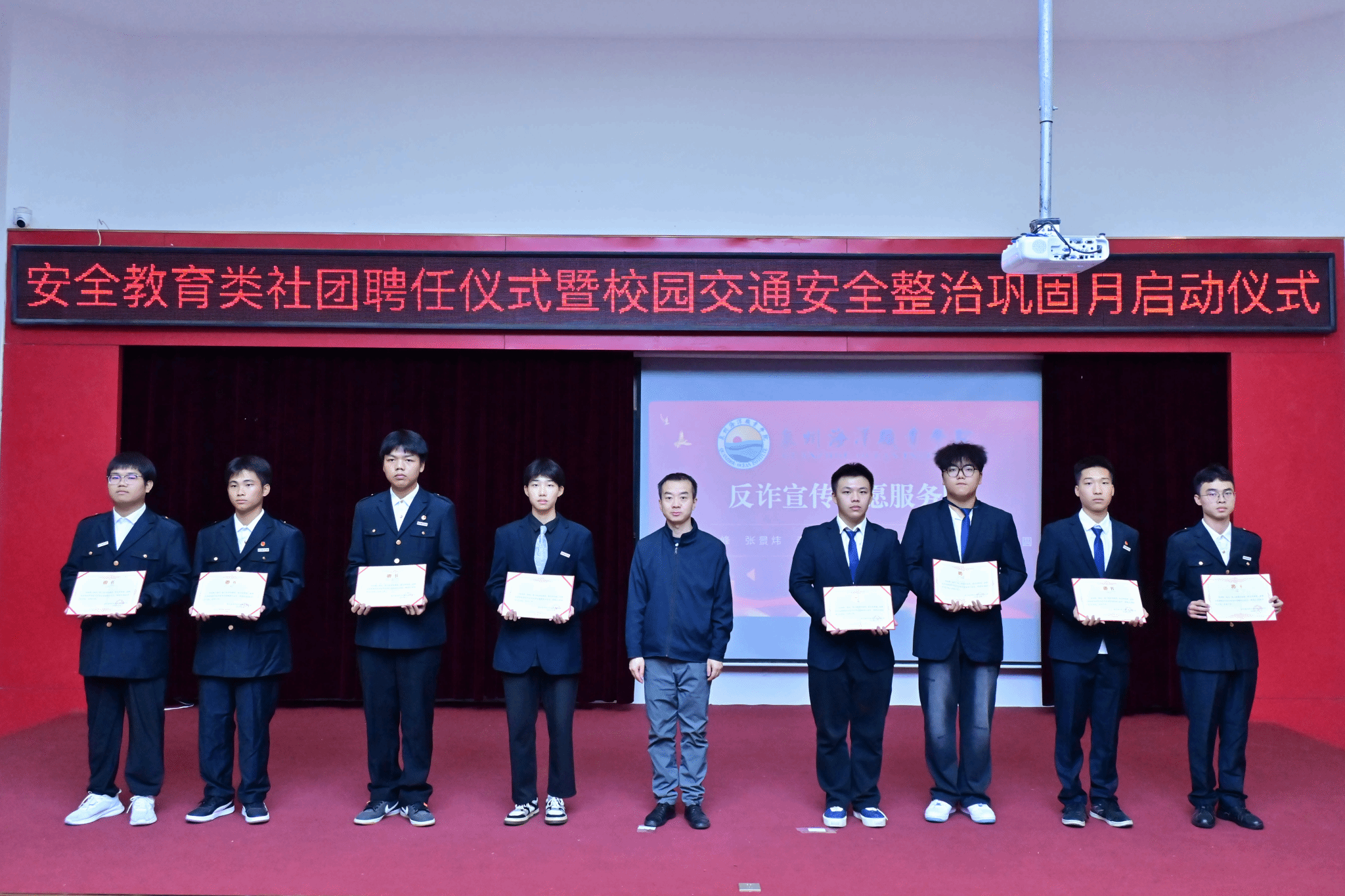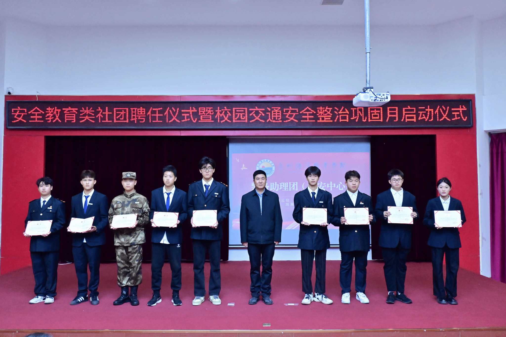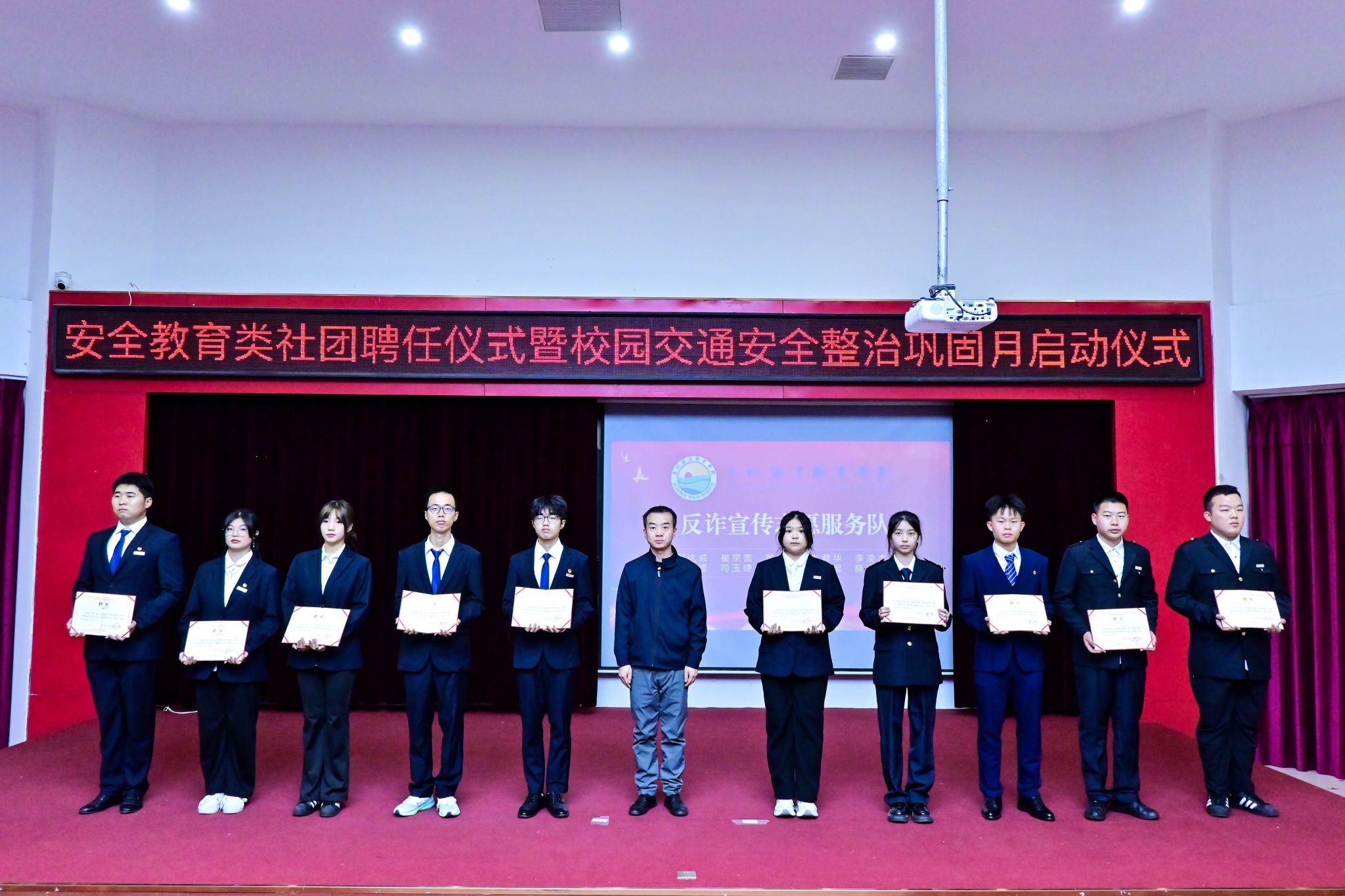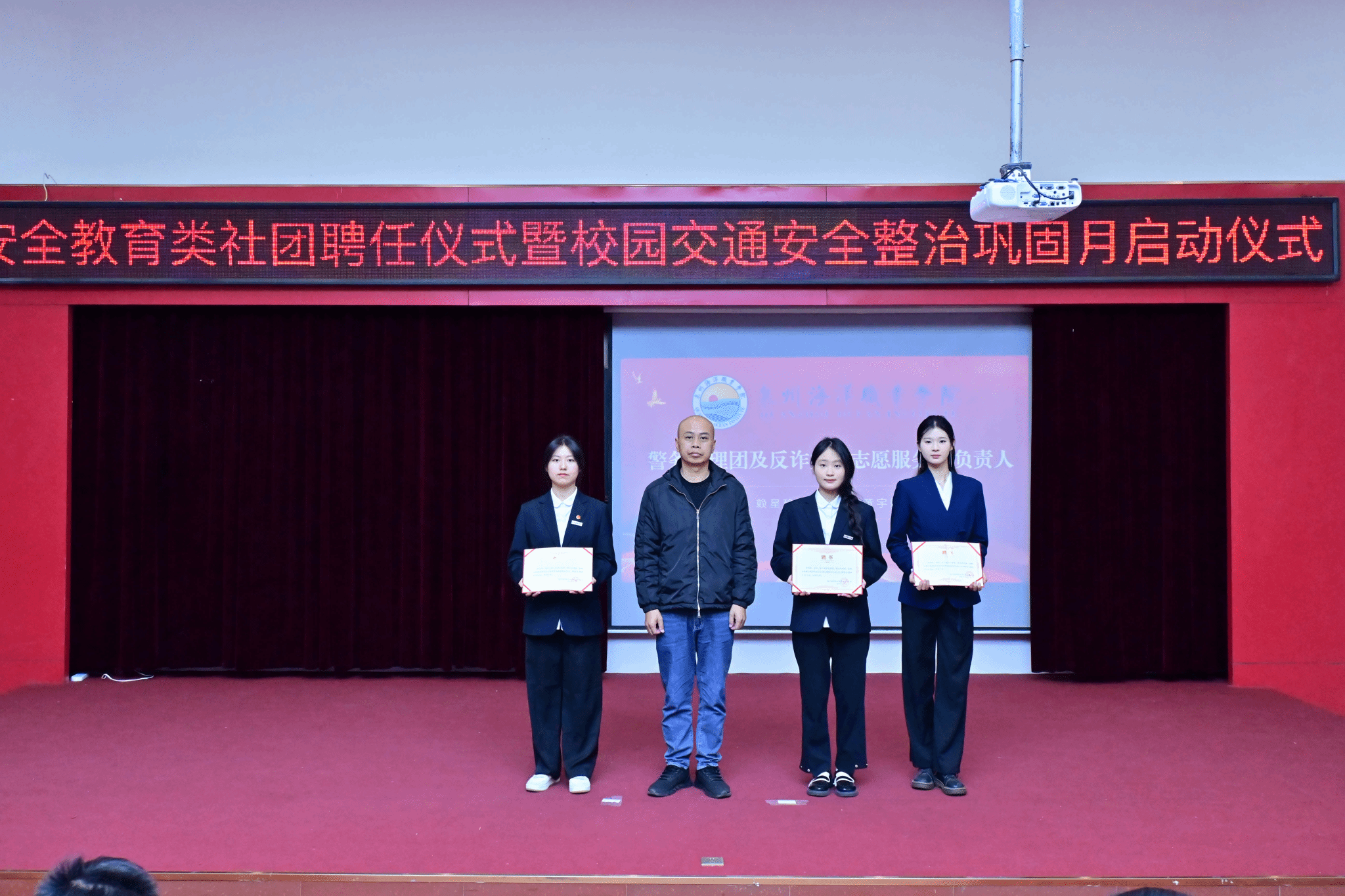(新闻中心讯 党委保卫部供稿 党委宣传部报道)12月10日,学校在2204报告厅举办安全教育类社团聘任仪式暨校园交通安全整治巩固月启动仪式。校党委副书记、副校长李明灿出席会议,党委保卫部、党委学工部、党委宣传部和校团委主要负责人,各二级学院安全工作专项负责人以及社团全体新晋成员参加仪式。