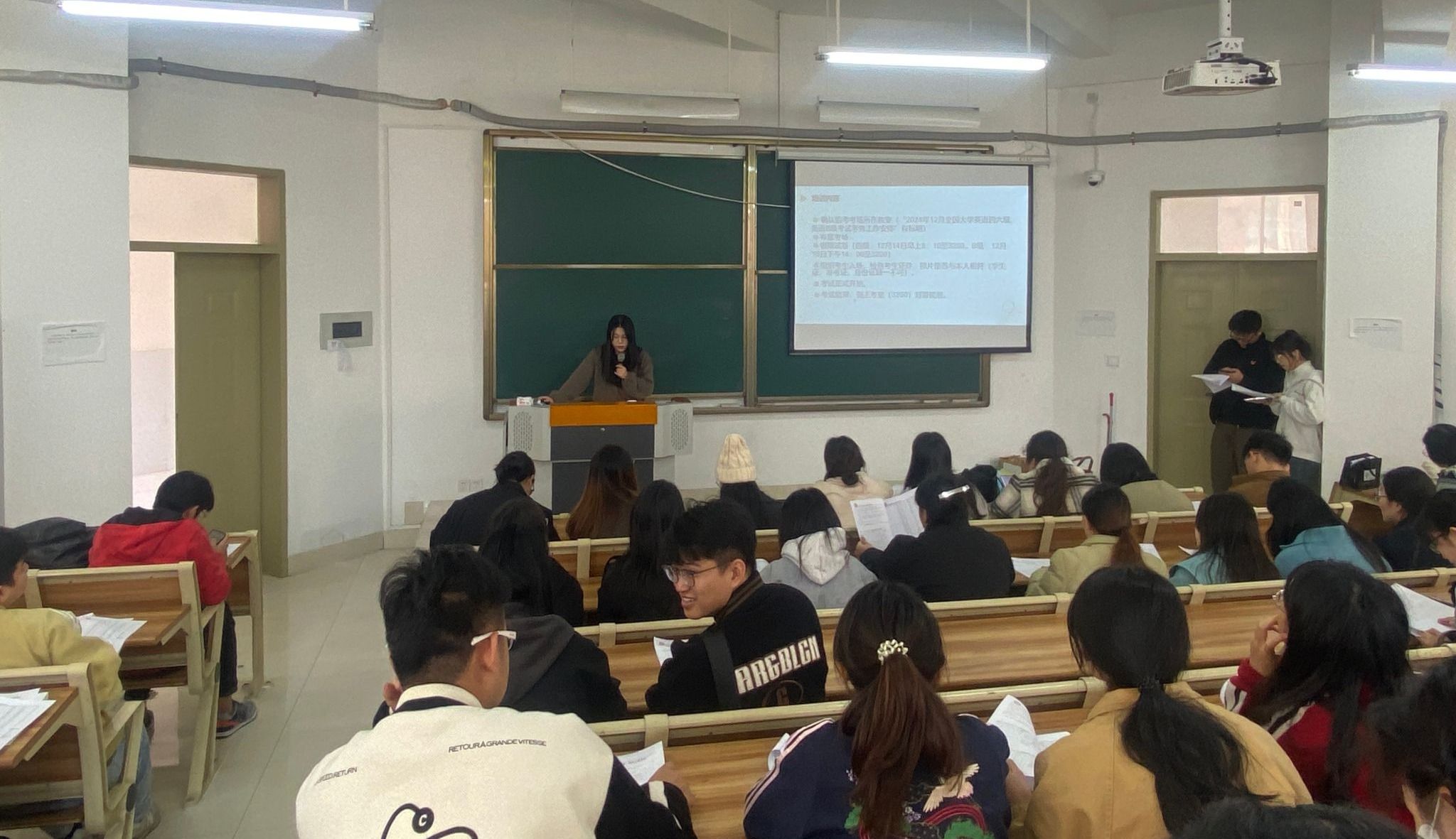 本次全国大学生四六级及B级等级考试严格按照教育部考试中心的要求进行。考前,学校对考场及周边环境进行了细致检查,进一步完善了作弊防控手段,优化了作弊防控机制,维护了考试公平环境,确保了考试安全。继续教育学院对考试准备工作进行周密的安排部署。12月13日,在3号教学楼3200教室召开了考务人员、放音人员、监考人员的线下培训会,对考试工作提出了严格要求,分工明确,责任到人,确保考试顺利进行。